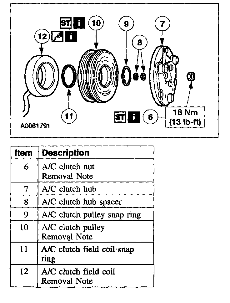 Item 12: A/C Clutch Field Coil Removal Note
