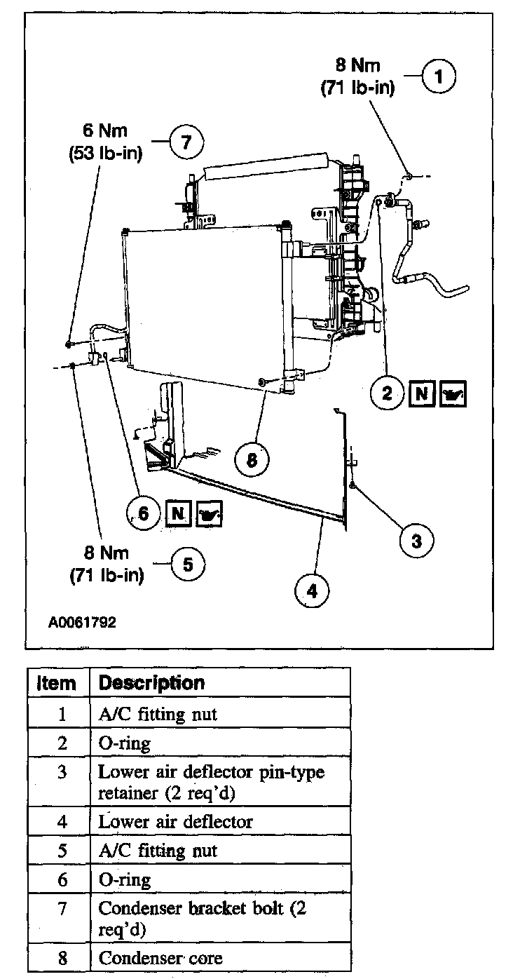 - New O-ring seals, lubricated in clean PAG oil, must be installed before reconnecting any A/C fitting that has been disconnected.
