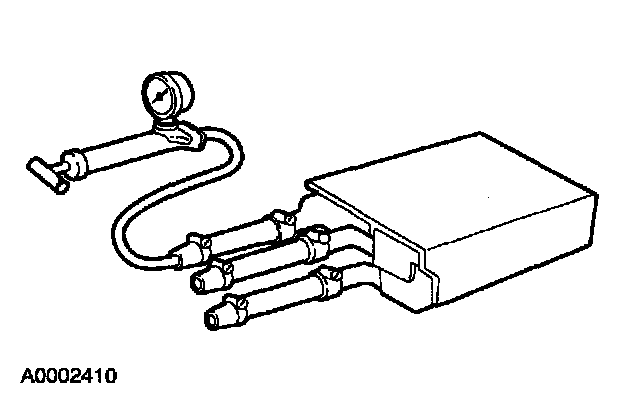 8. If the pressure drops, check the heater hose connections to the core tubes for leaks. If the heater hoses do not leak, remove the heater core from the vehicle and carry out the bench test.