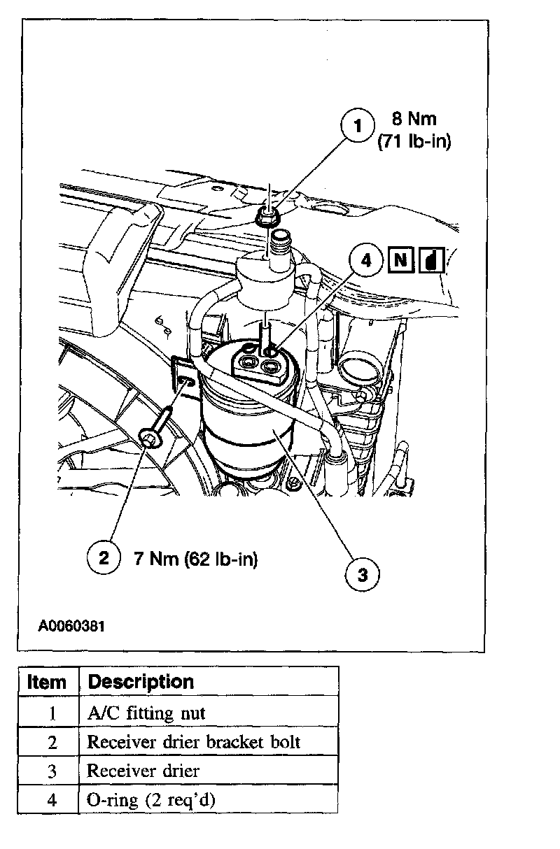- Installation of a new receiver drier is not required when repairing the air conditioning system except when there is physical evidence of contamination from a failed A/C compressor or damage to the receiver drier.