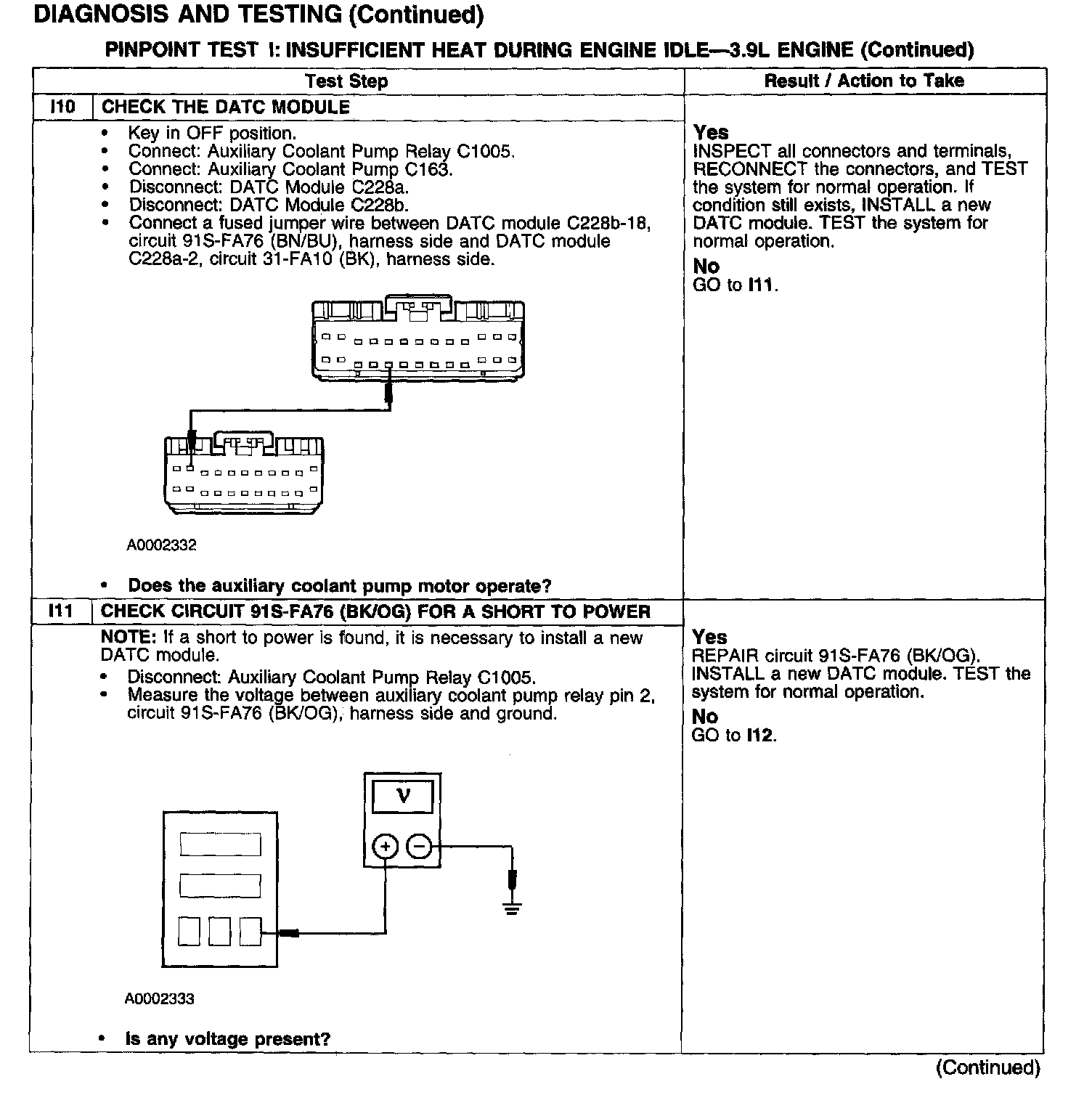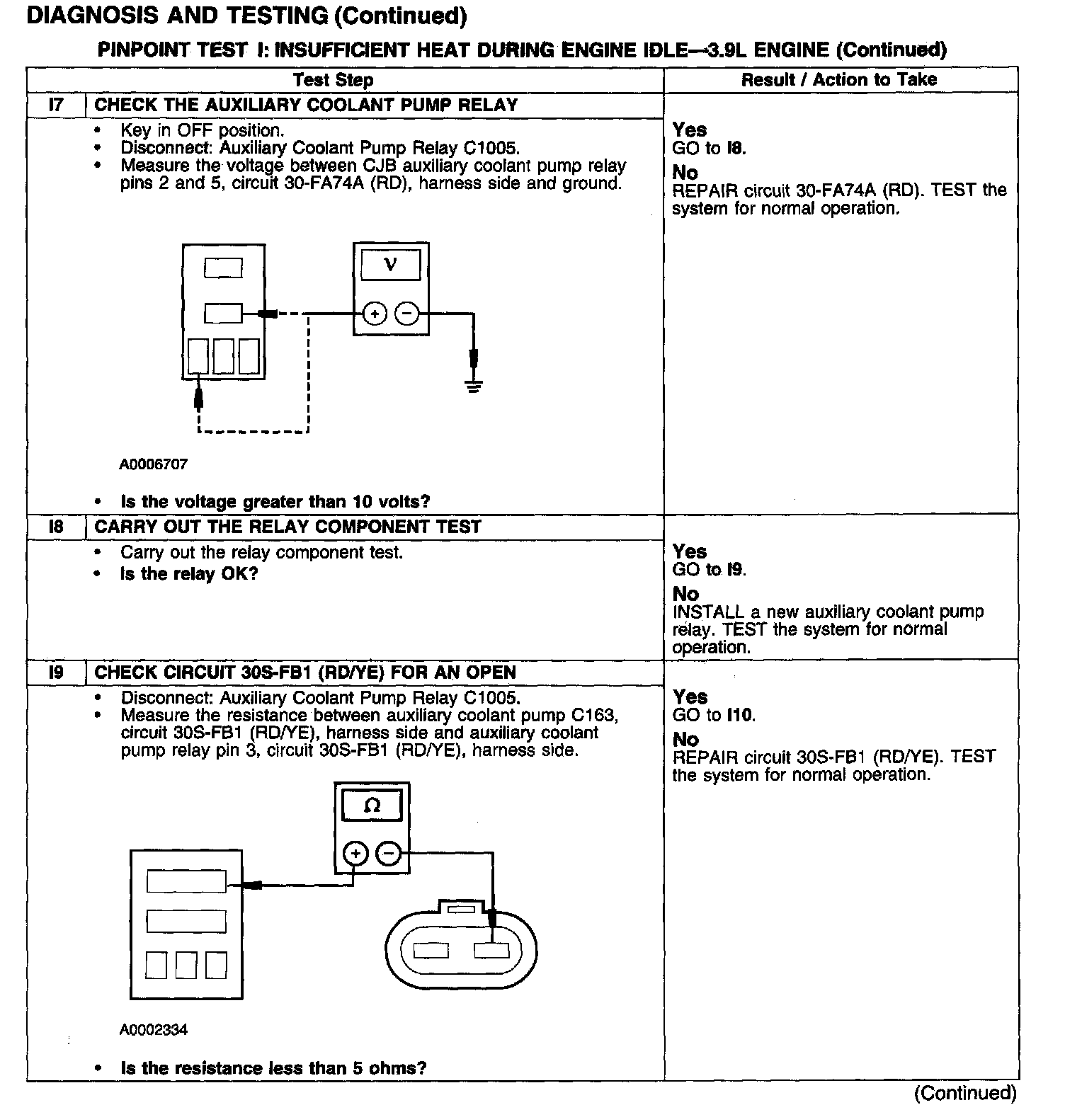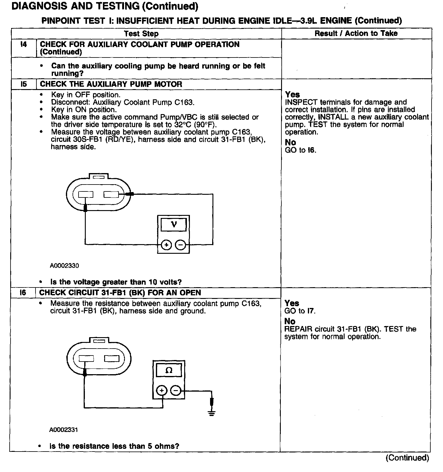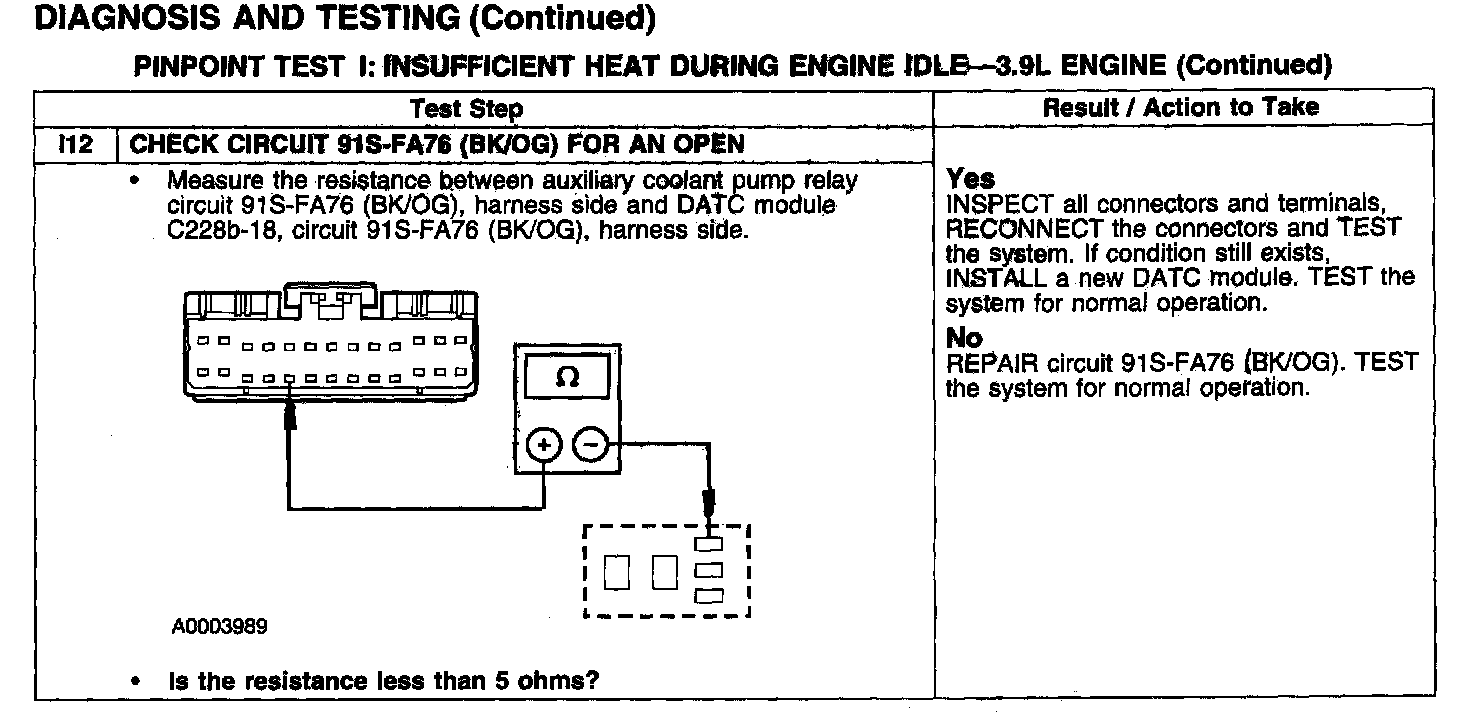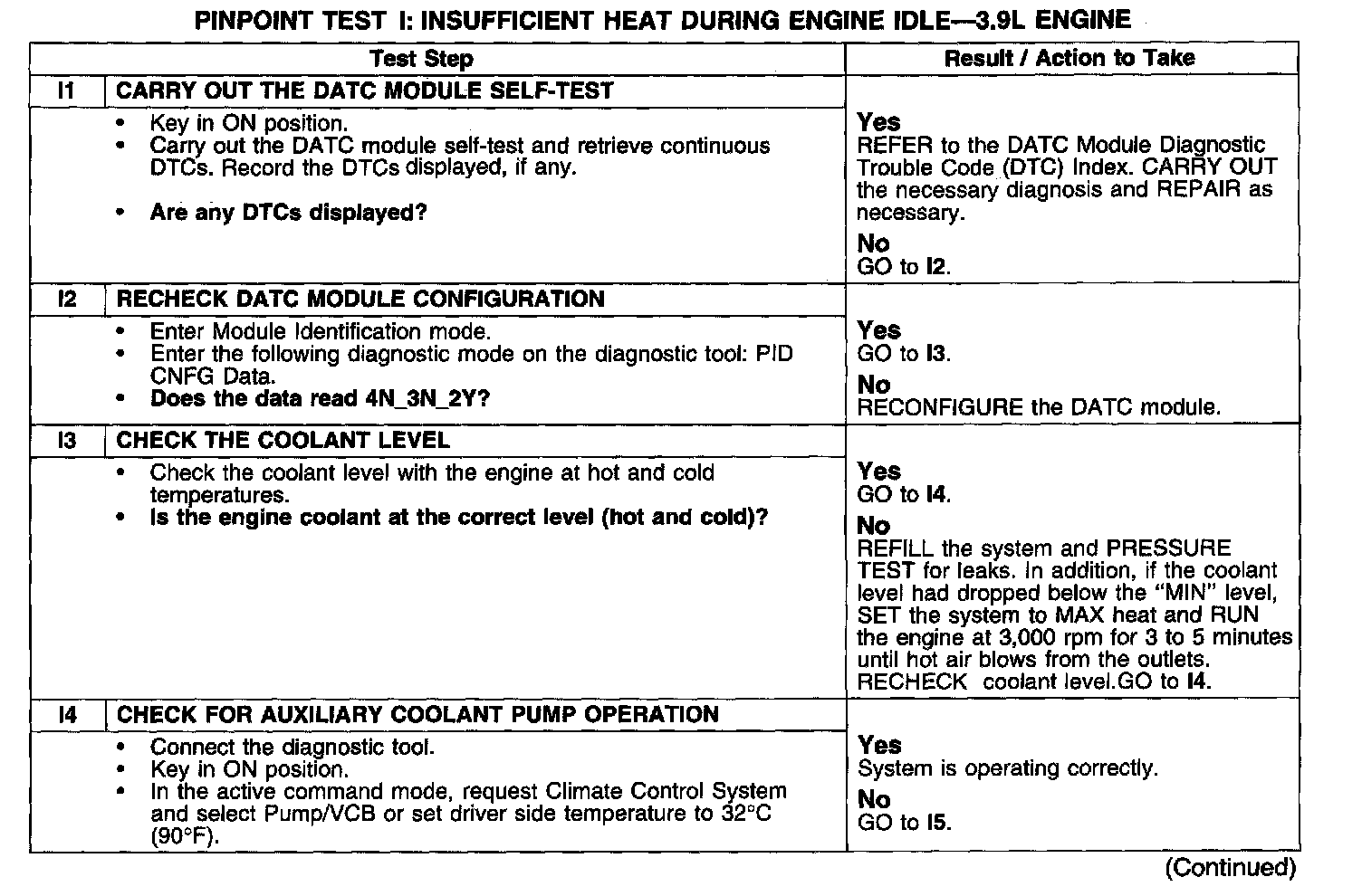 PINPOINT TEST I: INSUFFICIENT HEAT DURING ENGINE IDLE - 3.9 L ENGINETest I1-I4: