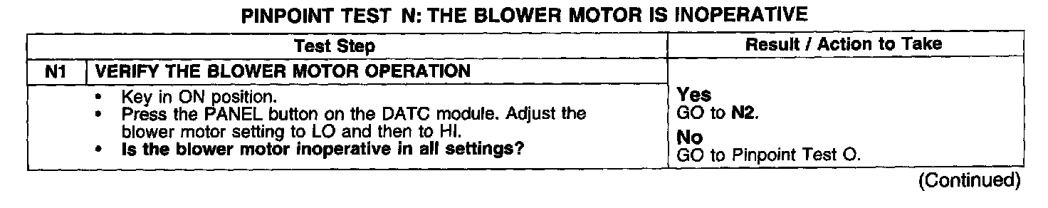 PINPOINT TEST N: THE BLOWER MOTOR IS INOPERATIVETest N1:
