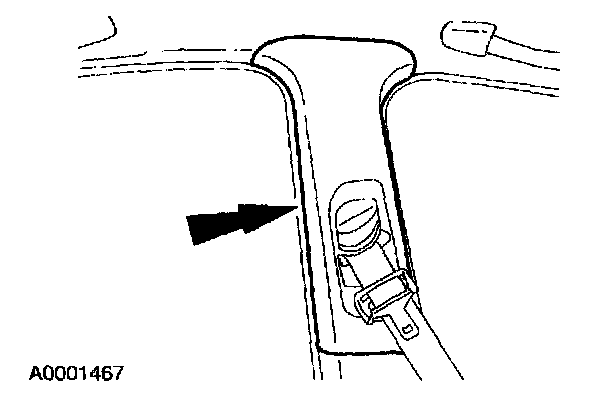 6. Operate the front seat shoulder strap adjuster. Make sure it travels from top to bottom and locks correctly in each position.
