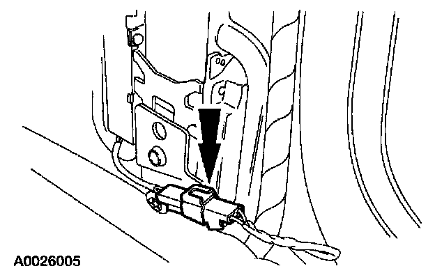 12. Connect the passenger side safety belt retractor pretensioner electrical connector.