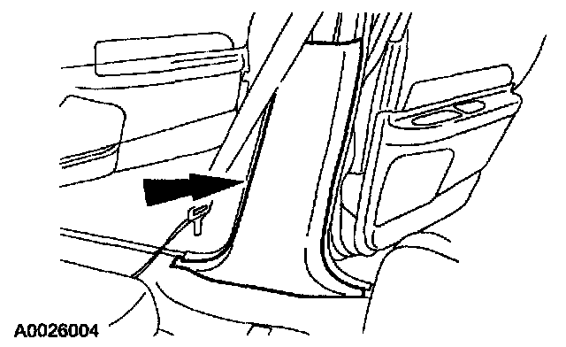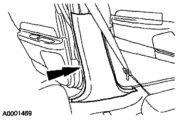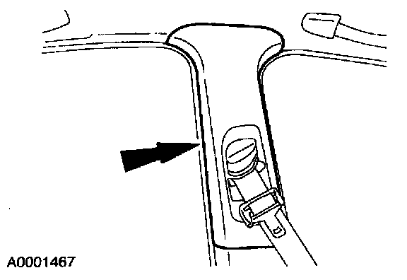 5. NOTE: Position the driver side safety belt shoulder height adjuster and B-pillar trim panel sliding panel to their highest point.