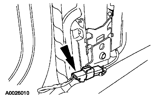 11. Remove the restraint system diagnostic tool from the vehicle harness side of the passenger safety belt retractor pretensioner electrical connector.