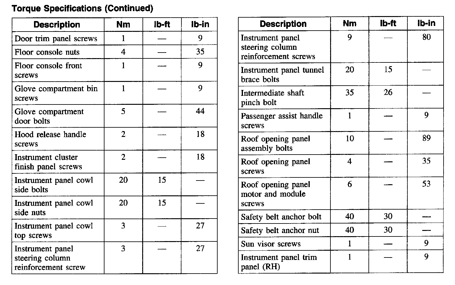 Torque Specifications, Part 1: