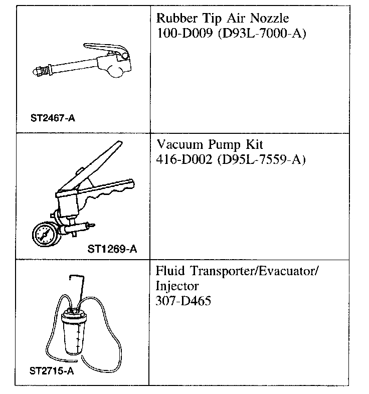 12. Apply a maximum of 206.85 kPa (30 psi) to the open end of the vacuum/pressure hose from the special tool. Fluid will immediately start flowing out of the special tool into the transmission fluid pan.