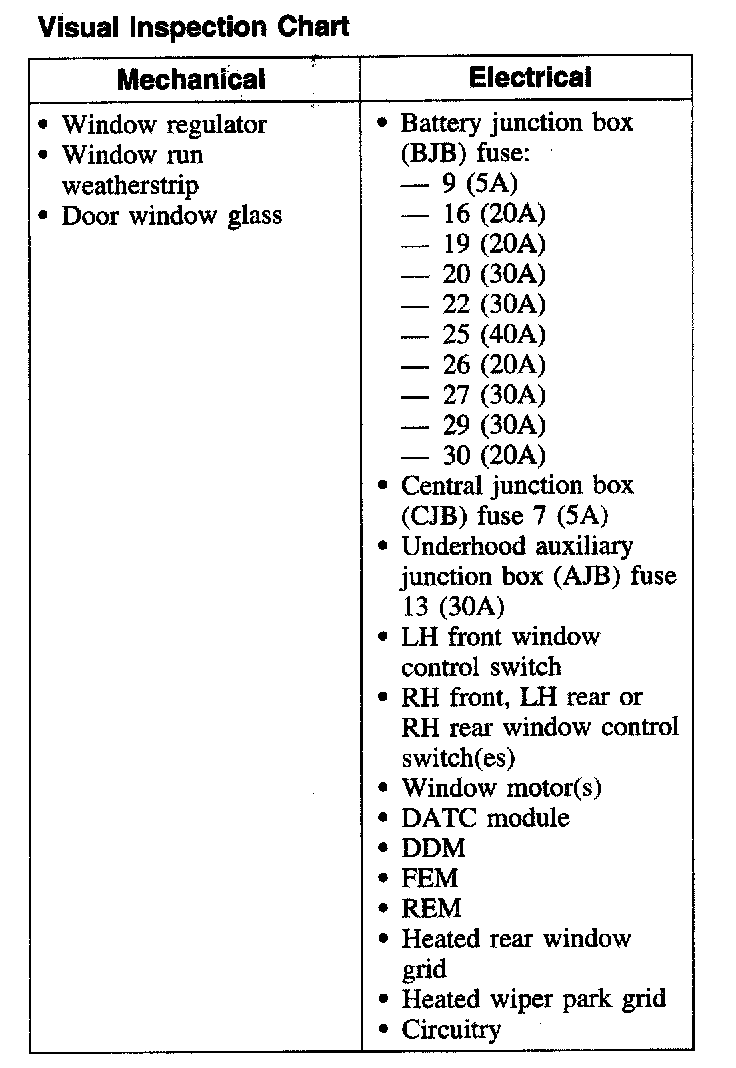2. Visually inspect for obvious signs of mechanical or electrical damage; refer to the chart.