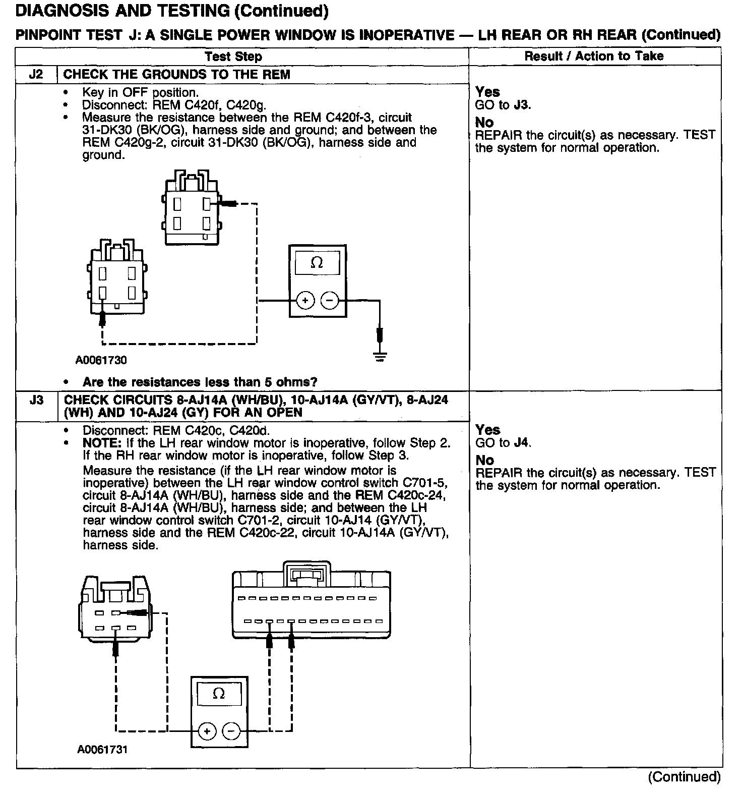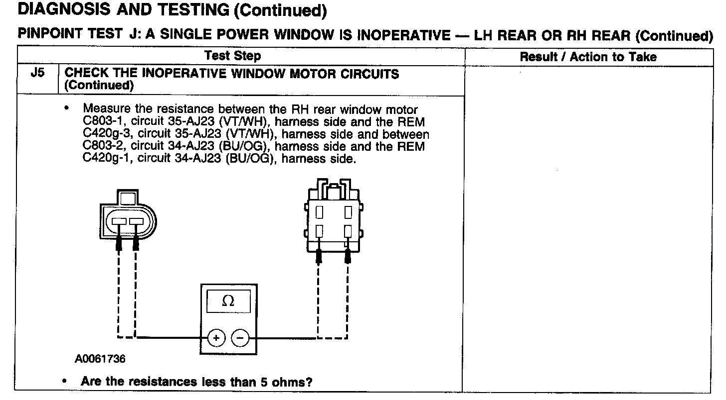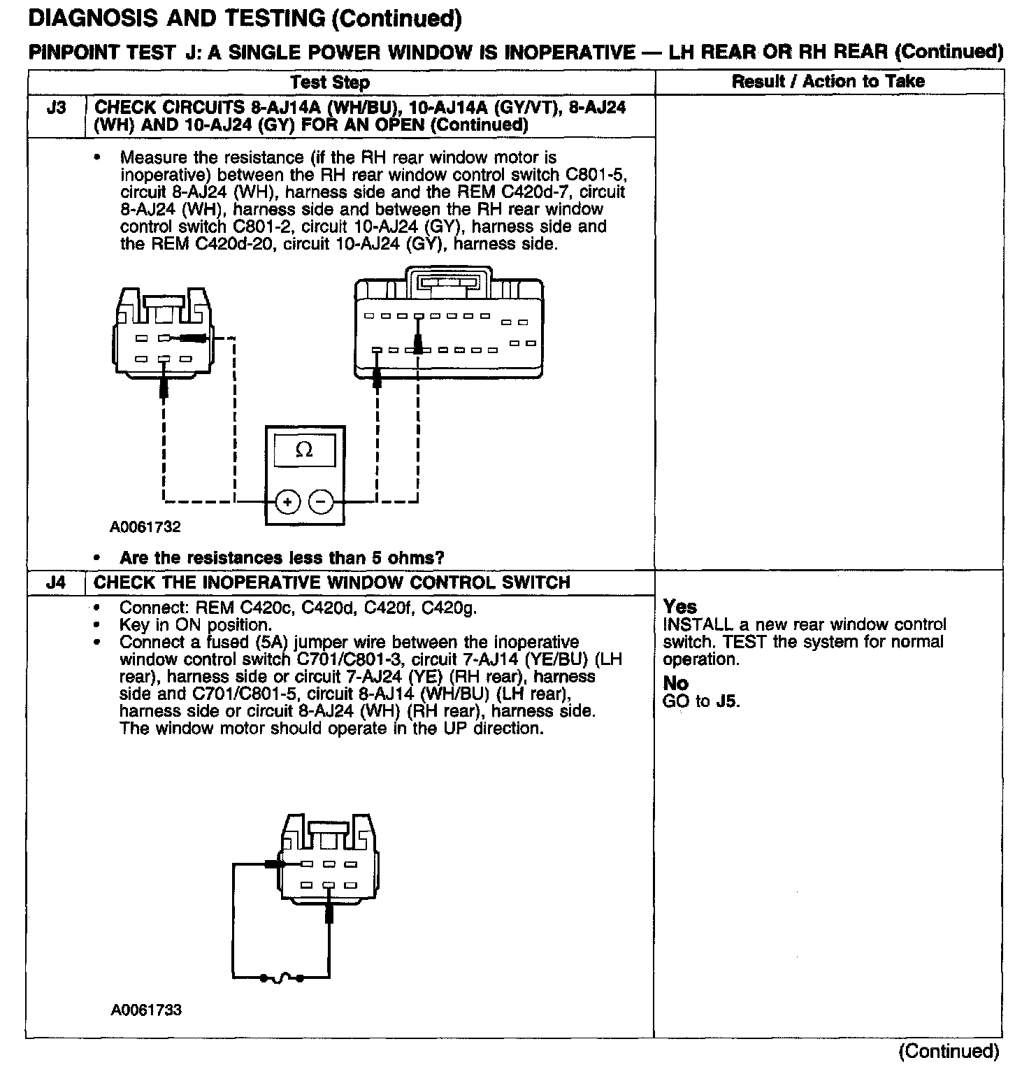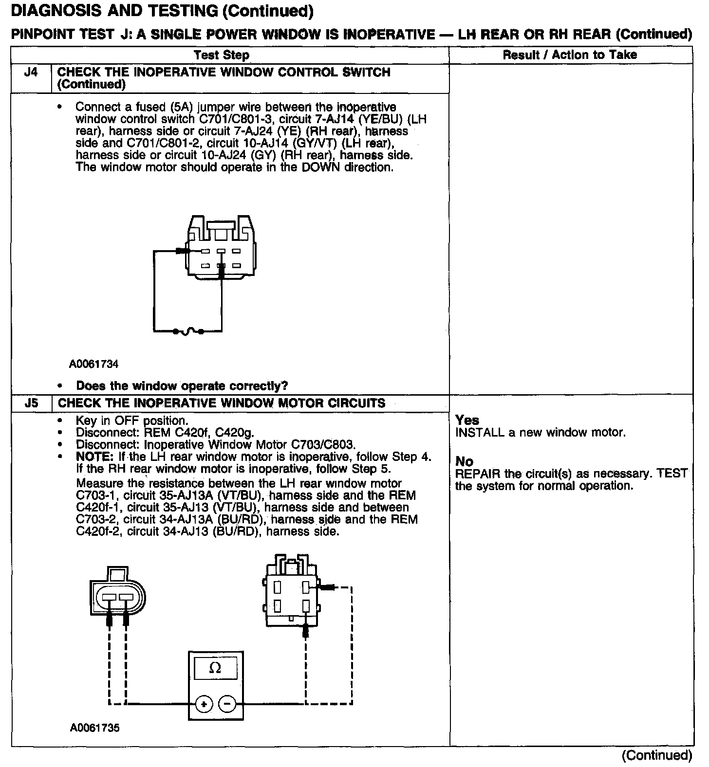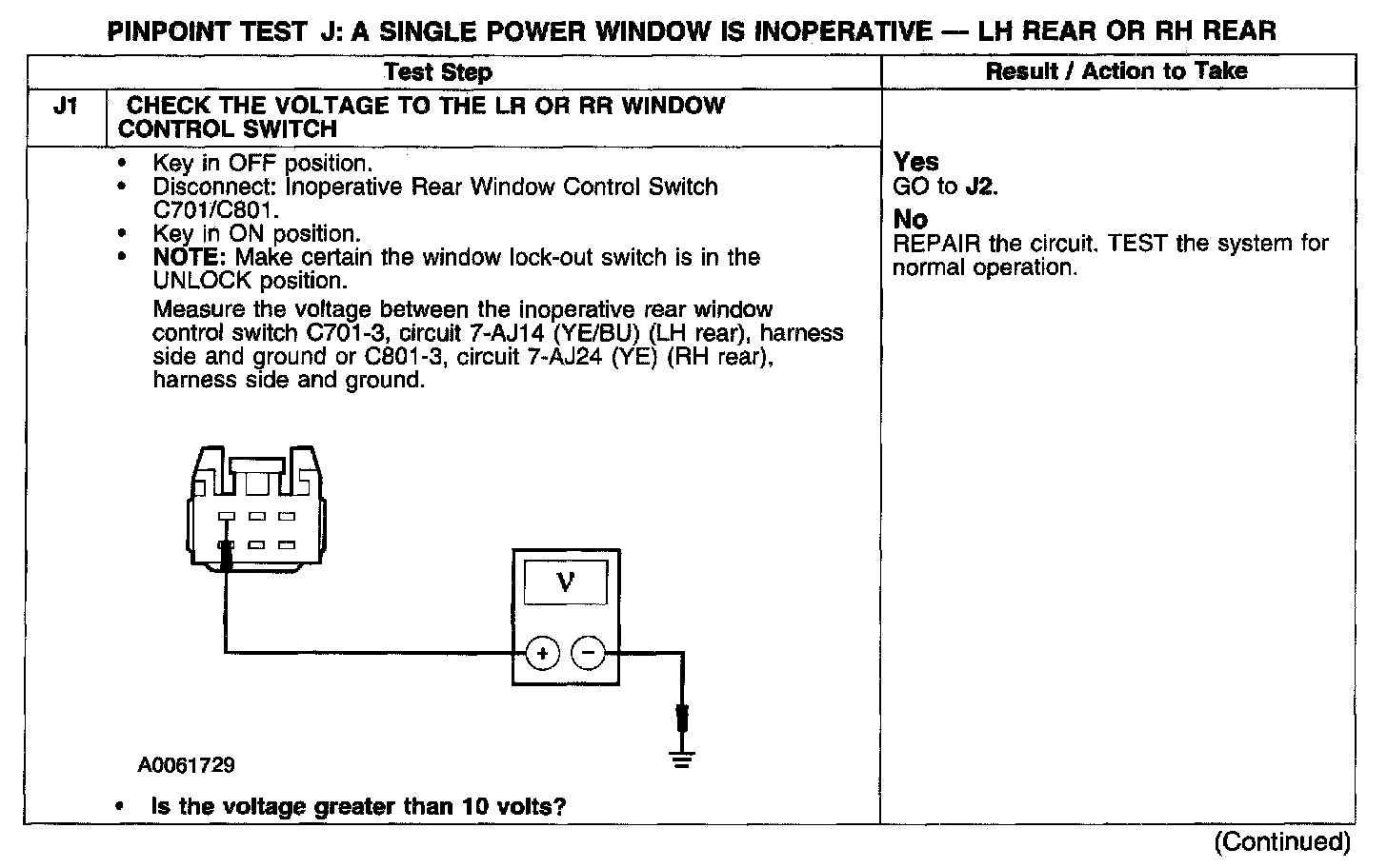 PINPOINT TEST J: A SINGLE POWER WINDOW IS INOPERATIVE - LH REAR OR RH REARTest J1: