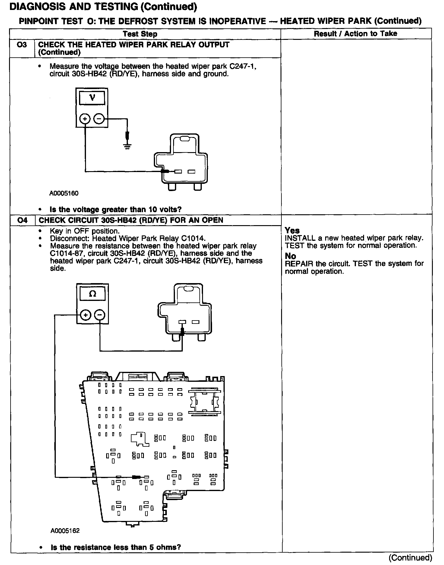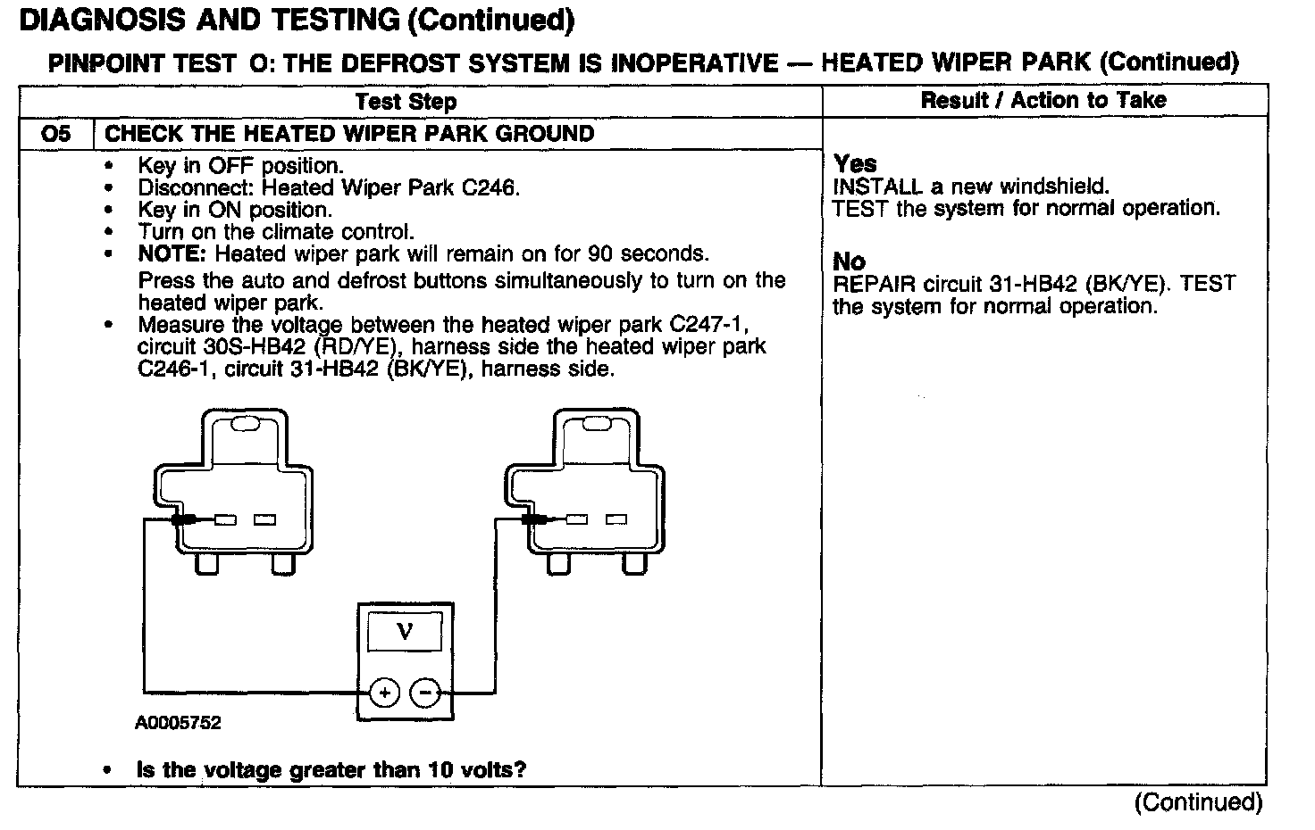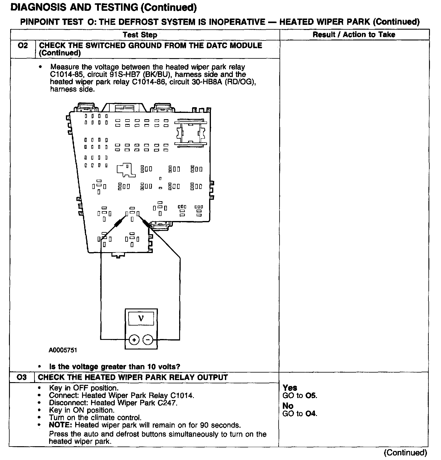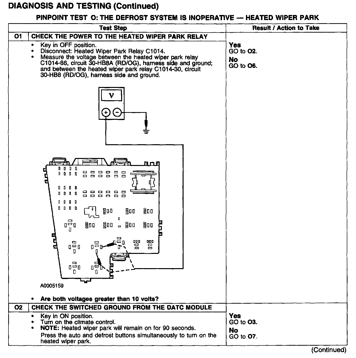 PINPOINT TEST O: THE DEFROST SYSTEM IS INOPERATIVE - HEATED WIPER PARKTest O1-O2: