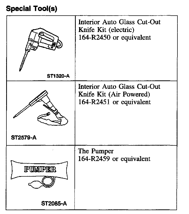 4. NOTE: Lubricate the existing urethane adhesive with water to aid the special tool while cutting.