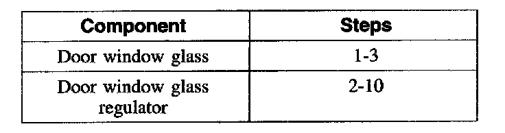 2. Make sure the front door window glass correctly seats in the glass mounting brackets as the front door window glass is raised.