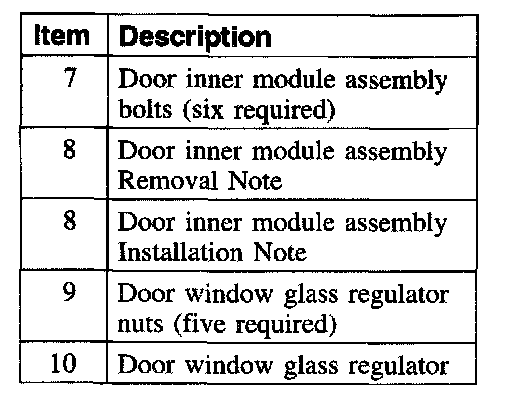 Item 8: Door Inner Module Assembly Removal Note