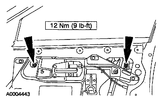 1. Position the front window regulator-to-glass clamp bolts to align with the access holes.