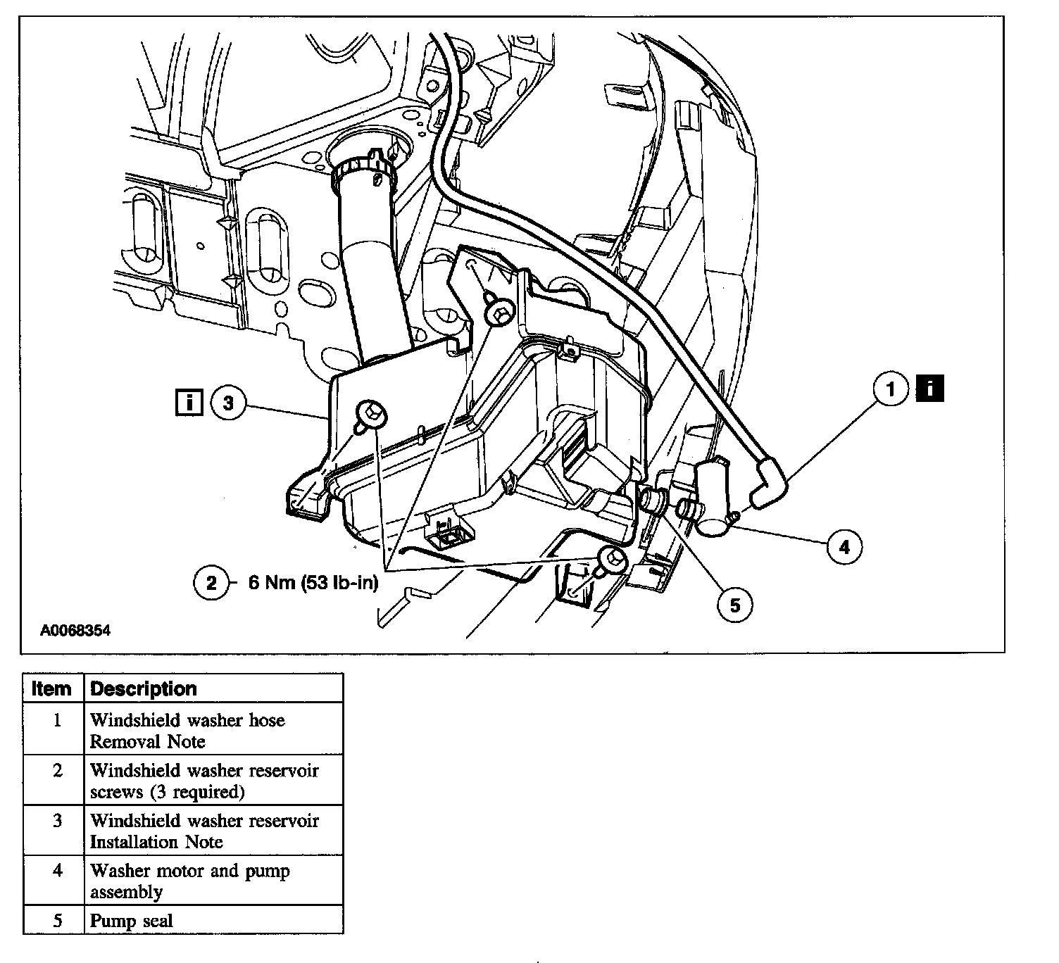 Item 3: Windshield Washer Reservoir Installation Note