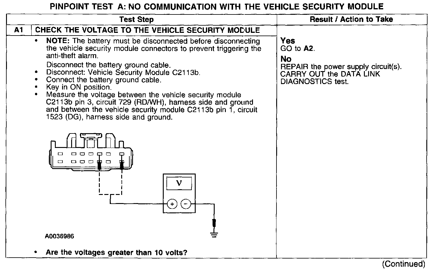 PINPOINT TEST A: NO COMMUNICATION WITH THE VEHICLE SECURITY MODULE