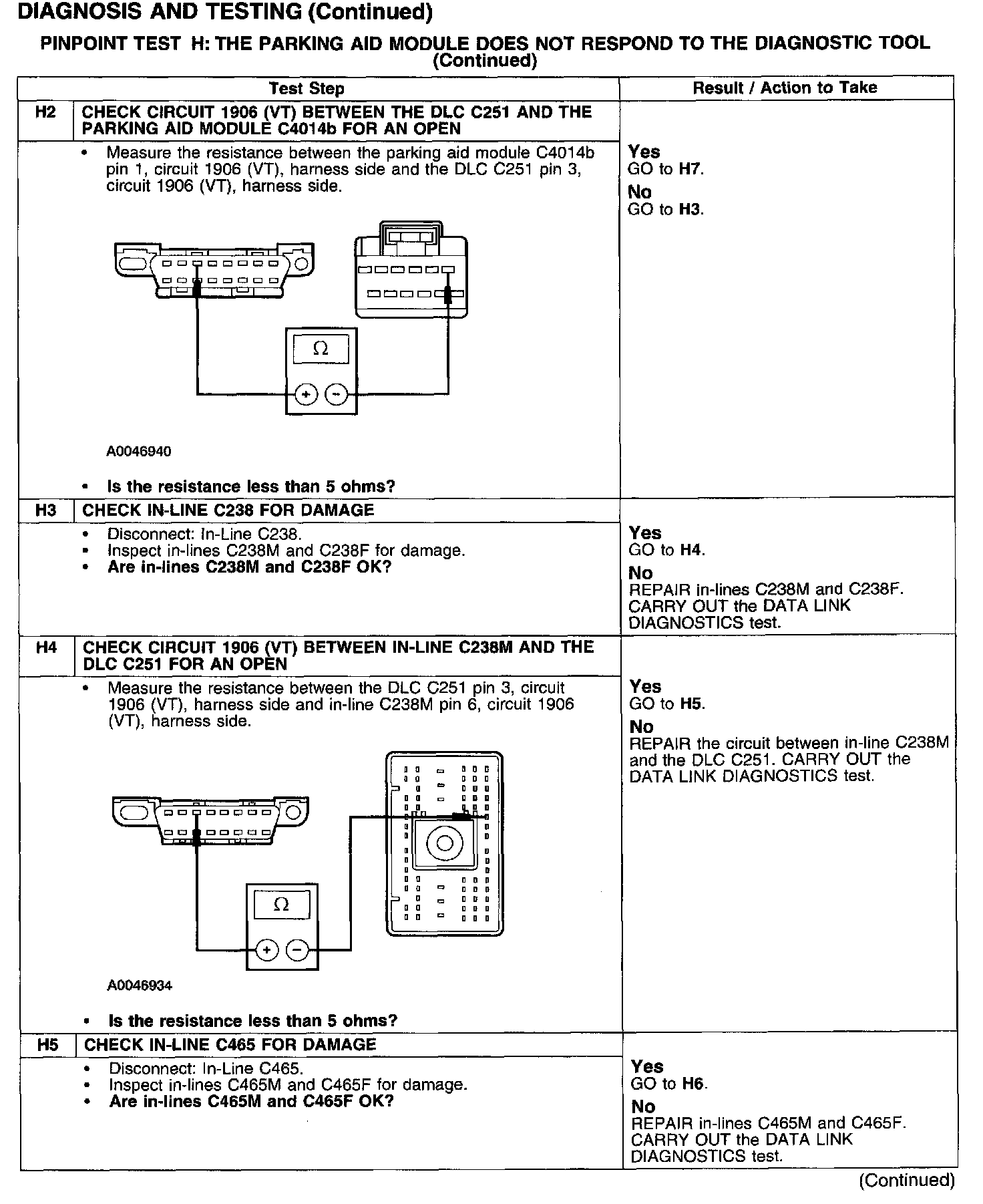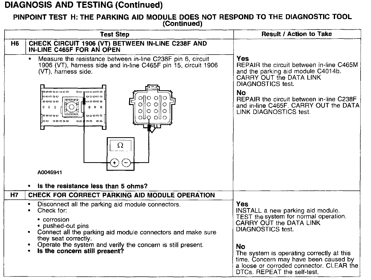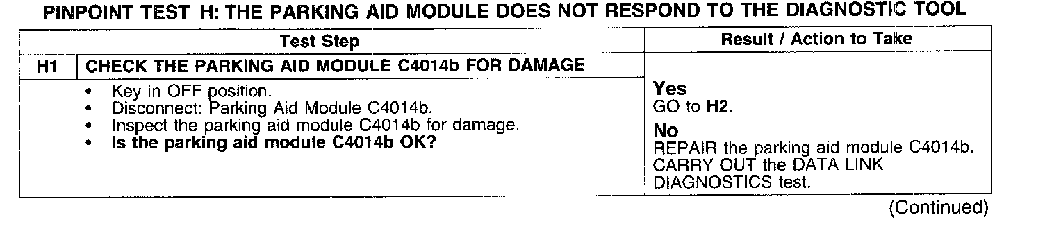 PINPOINT TEST H: THE PARKING AID MODULE DOES NOT RESPOND TO THE DIAGNOSTIC TOOL