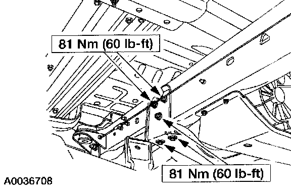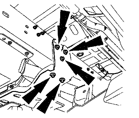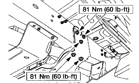 2. Remove the transmission insulator-to-crossmember support nuts.