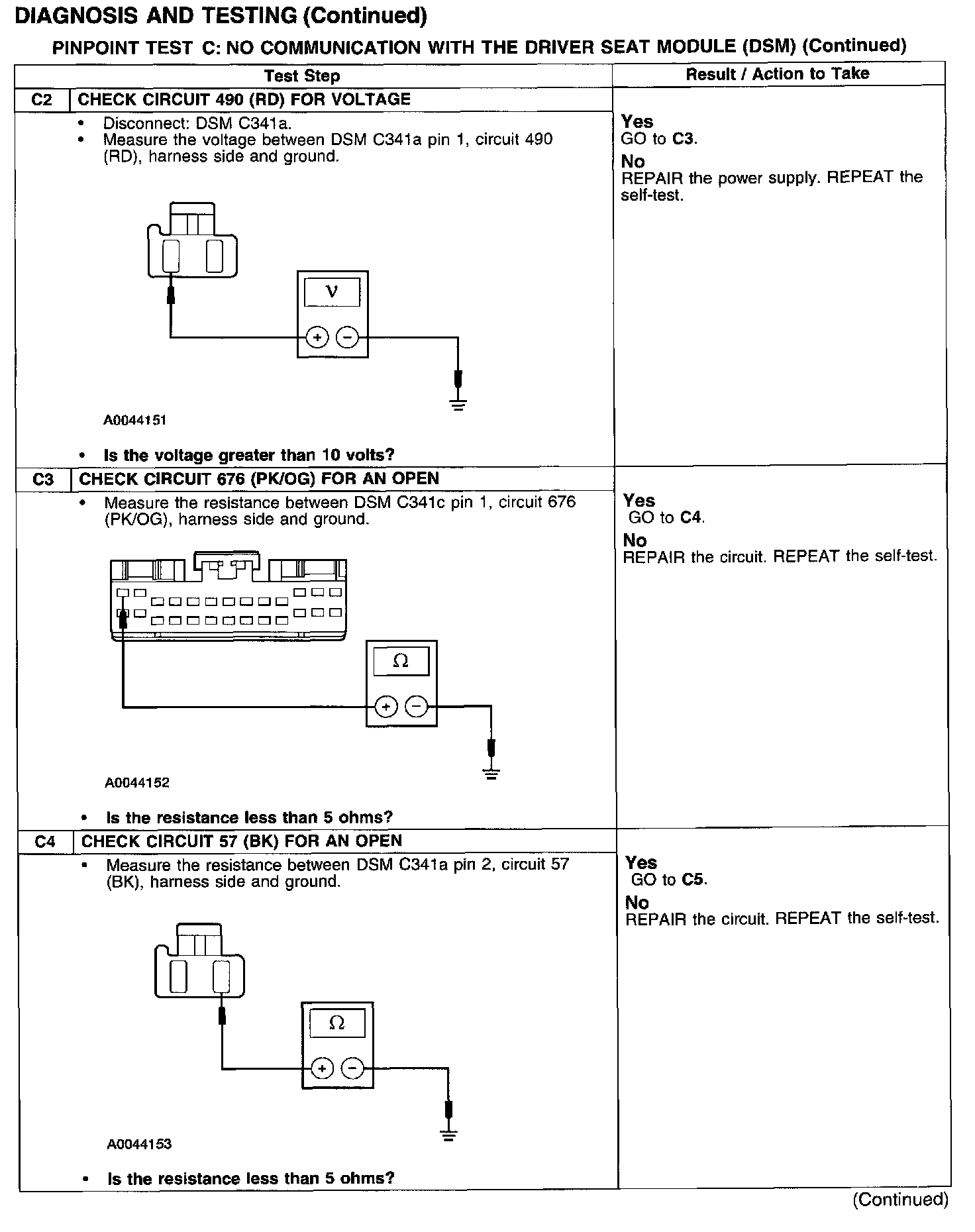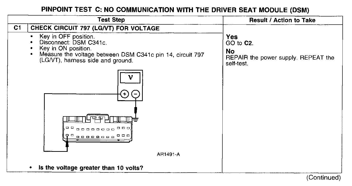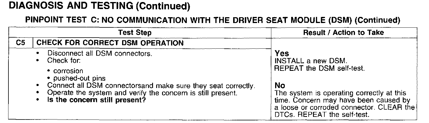 PINPOINT TEST C: NO COMMUNICATION WITH THE DRIVER SEAT MODULE (DSM)