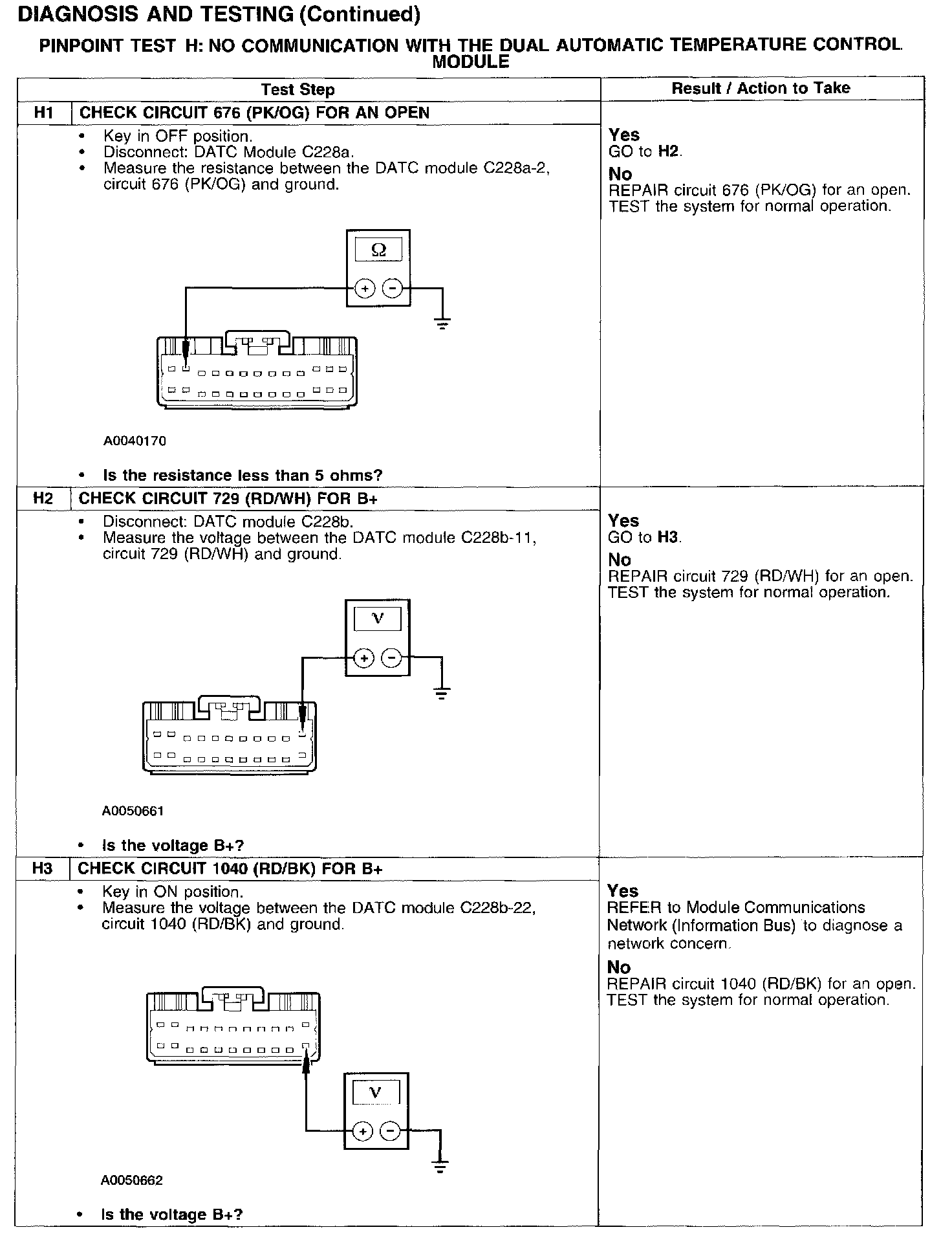 Test H: No Comm. W/Dual Auto Temperature Control Module