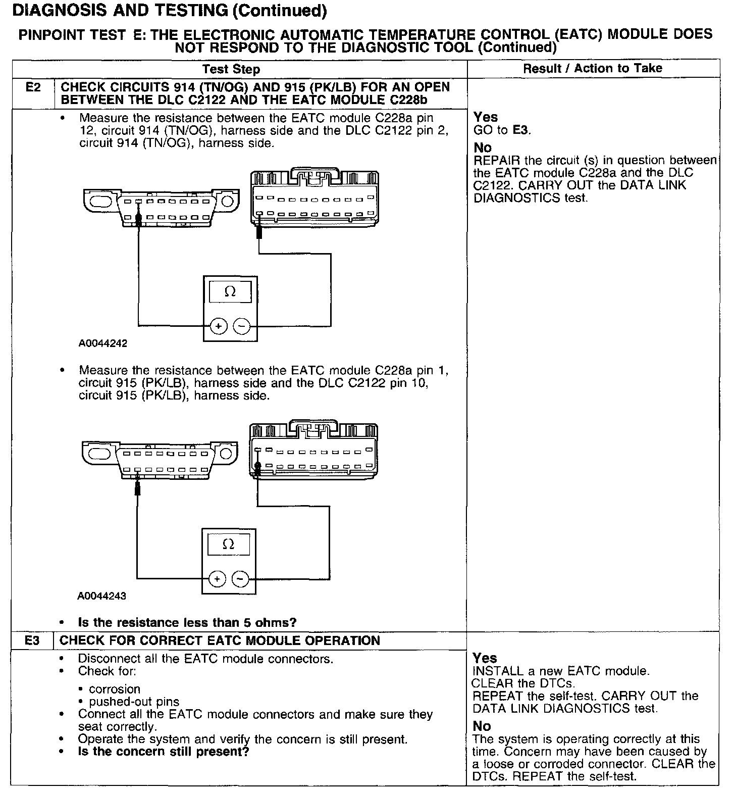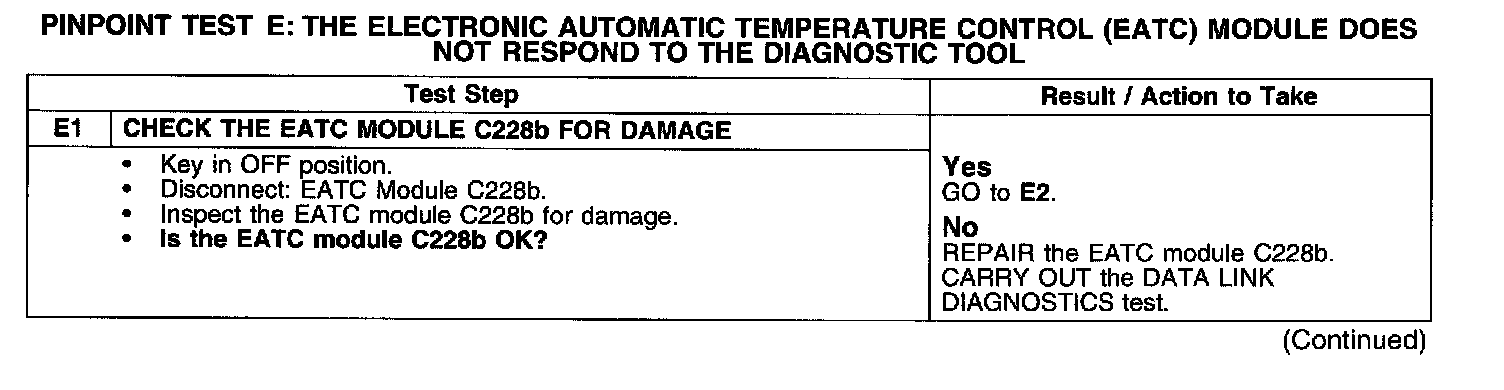 PINPOINT TEST E: THE ELECTRONIC AUTOMATIC TEMPERATURE CONTROL (EATC) MODULE DOES NOT RESPOND TO THE DIAGNOSTIC TOOL