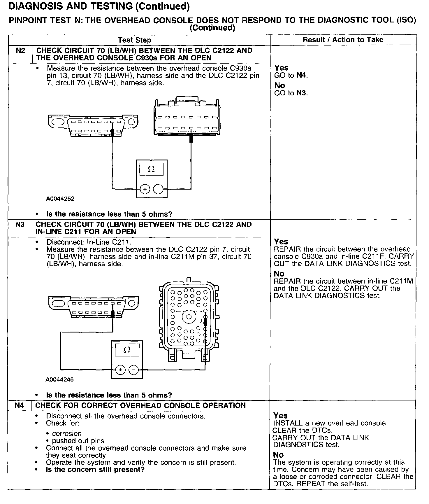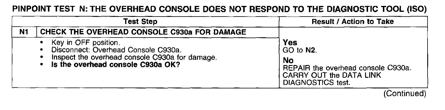 PINPOINT TEST N: THE OVERHEAD CONSOLE DOES NOT RESPOND TO THE DIAGNOSTIC TOOL (ISO)