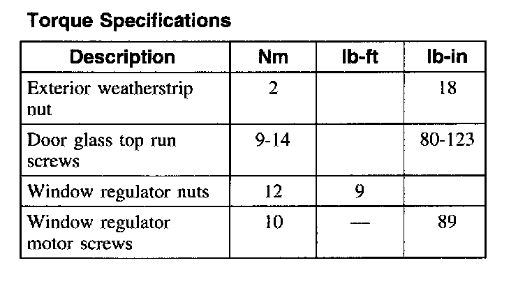 Torque Specifications: