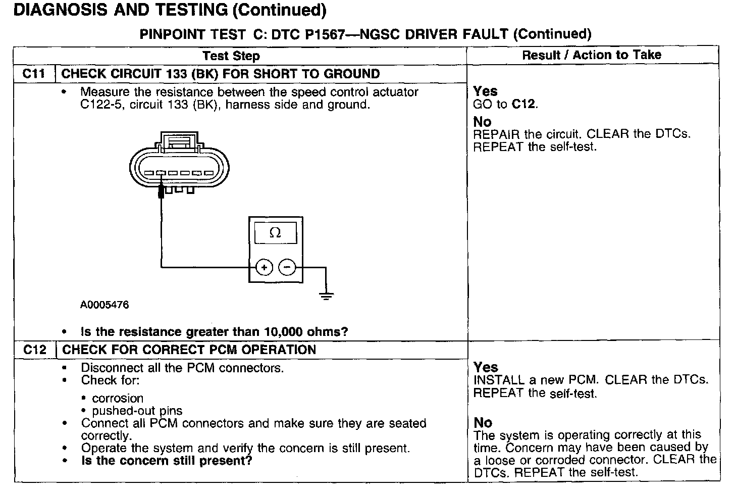 PINPOINT TEST C: DTC P1567 - NGSC DRIVER FAULTTest C1-C3: