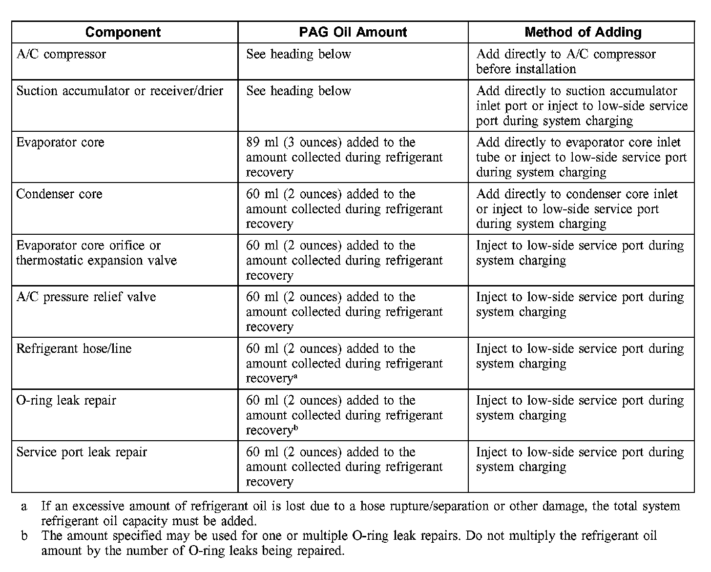 Refrigerant Oil Adding for New Suction Accumulator or Receiver/Drier Installation