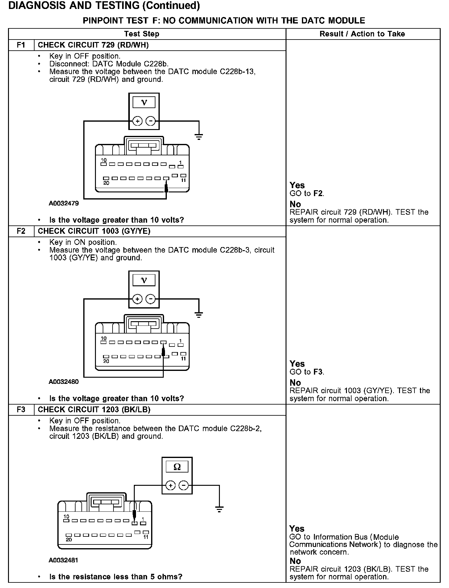 PINPOINT TEST F: NO COMMUNICATION WITH THE DATC MODULETest F1-F3: