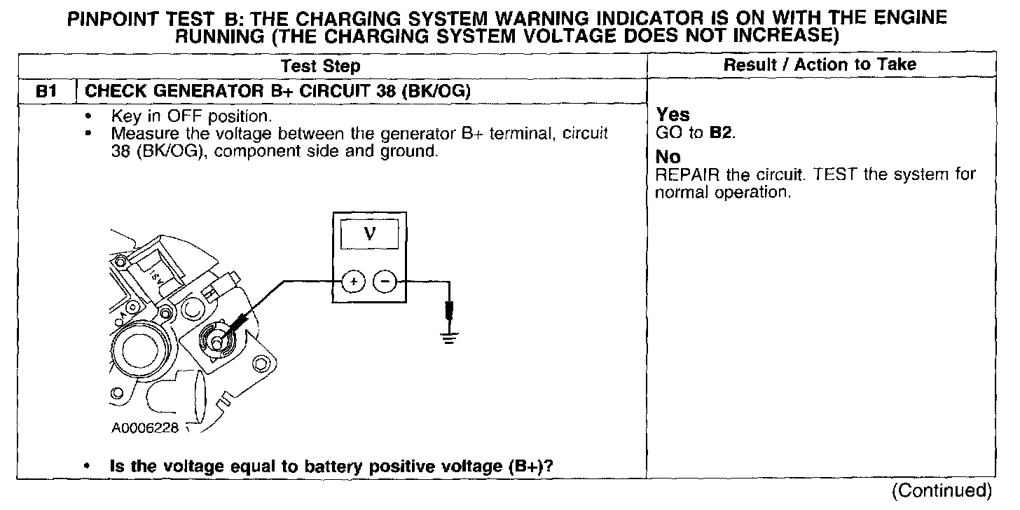 - generator B+ circuit 38 (BK/OG) open or high resistance
