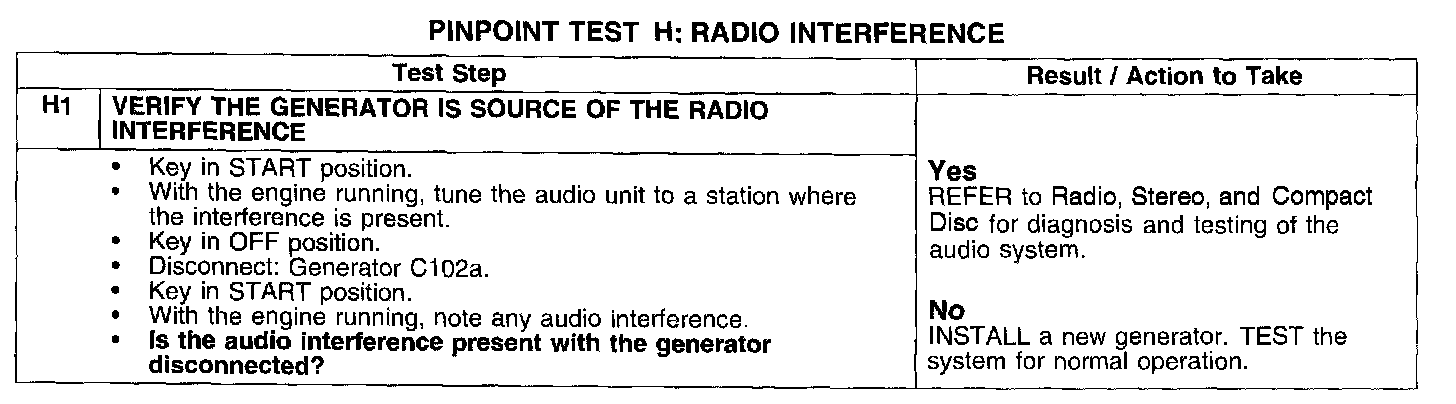 PINPOINT TEST H: RADIO INTERFERENCETest H1: