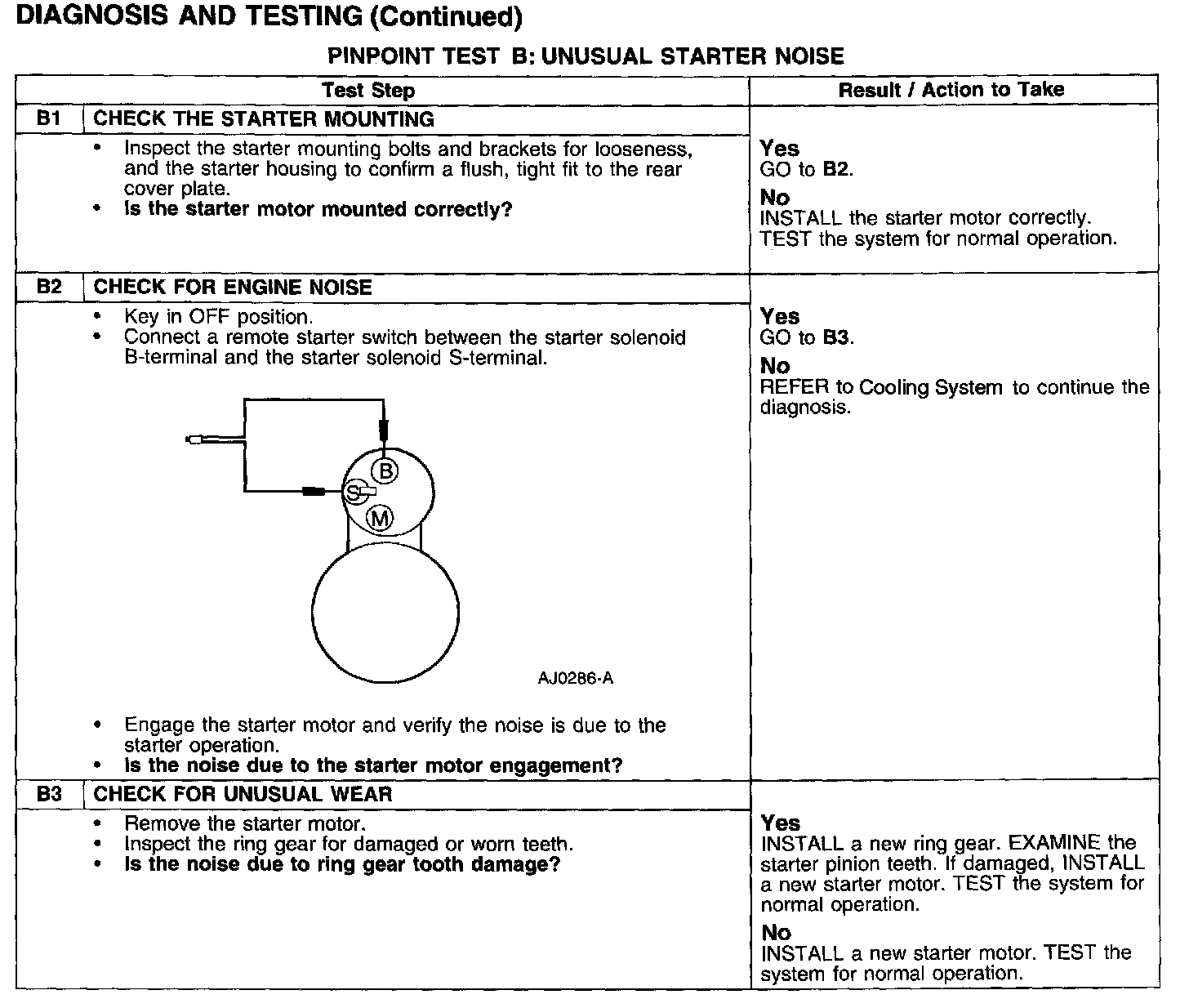 PINPOINT TEST B: UNUSUAL STARTER NOISE