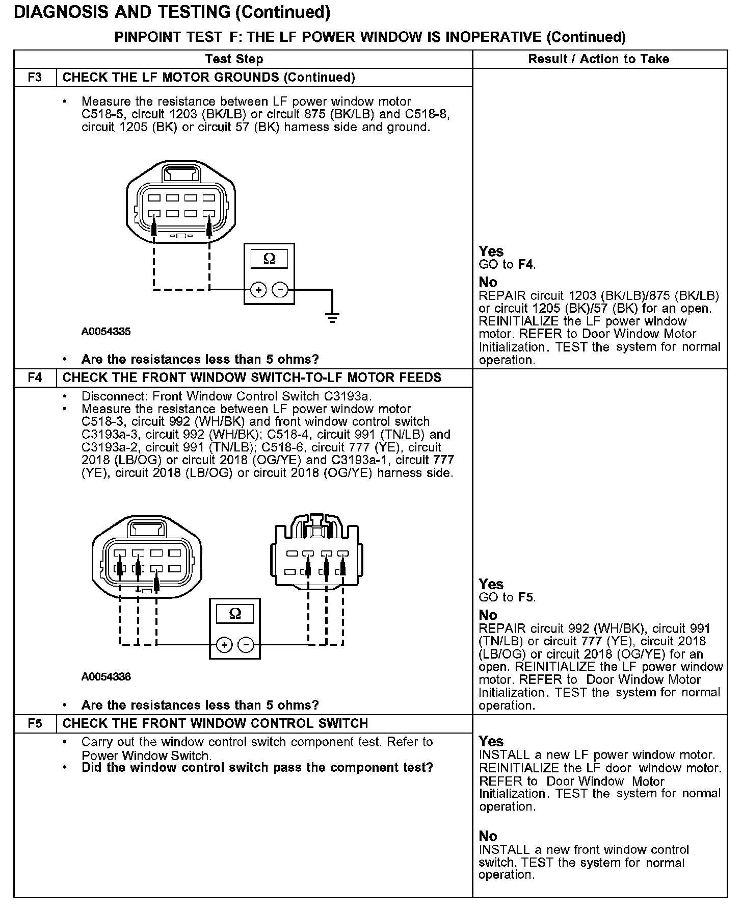 PINPOINT TEST F: THE LF POWER WINDOW IS INOPERATIVETest F1-F3: