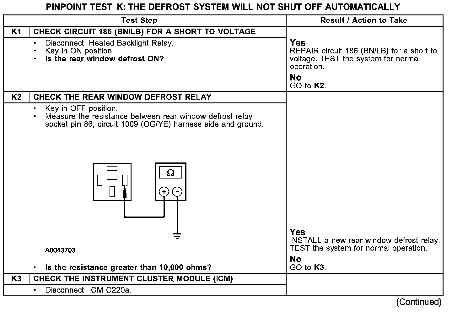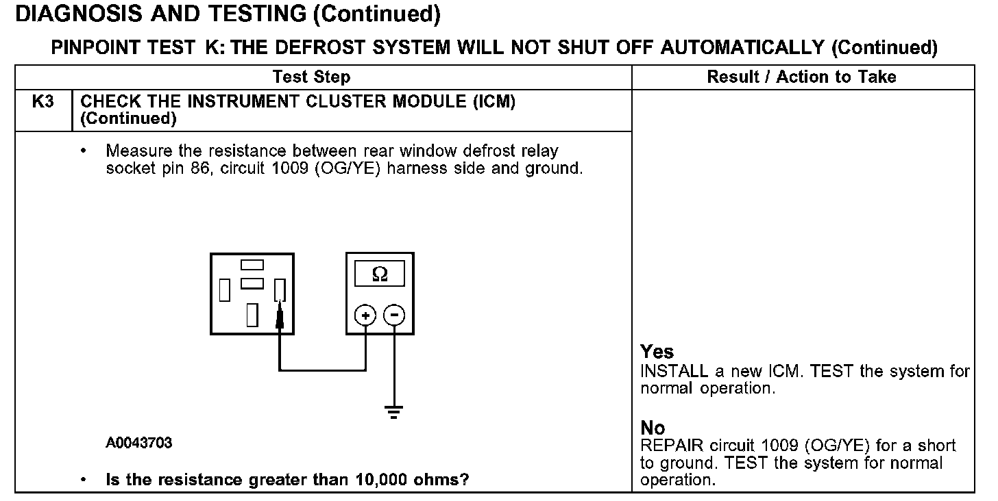 PINPOINT TEST K: THE DEFROST SYSTEM WILL NOT SHUT OFF AUTOMATICALLYTest K1-K3: