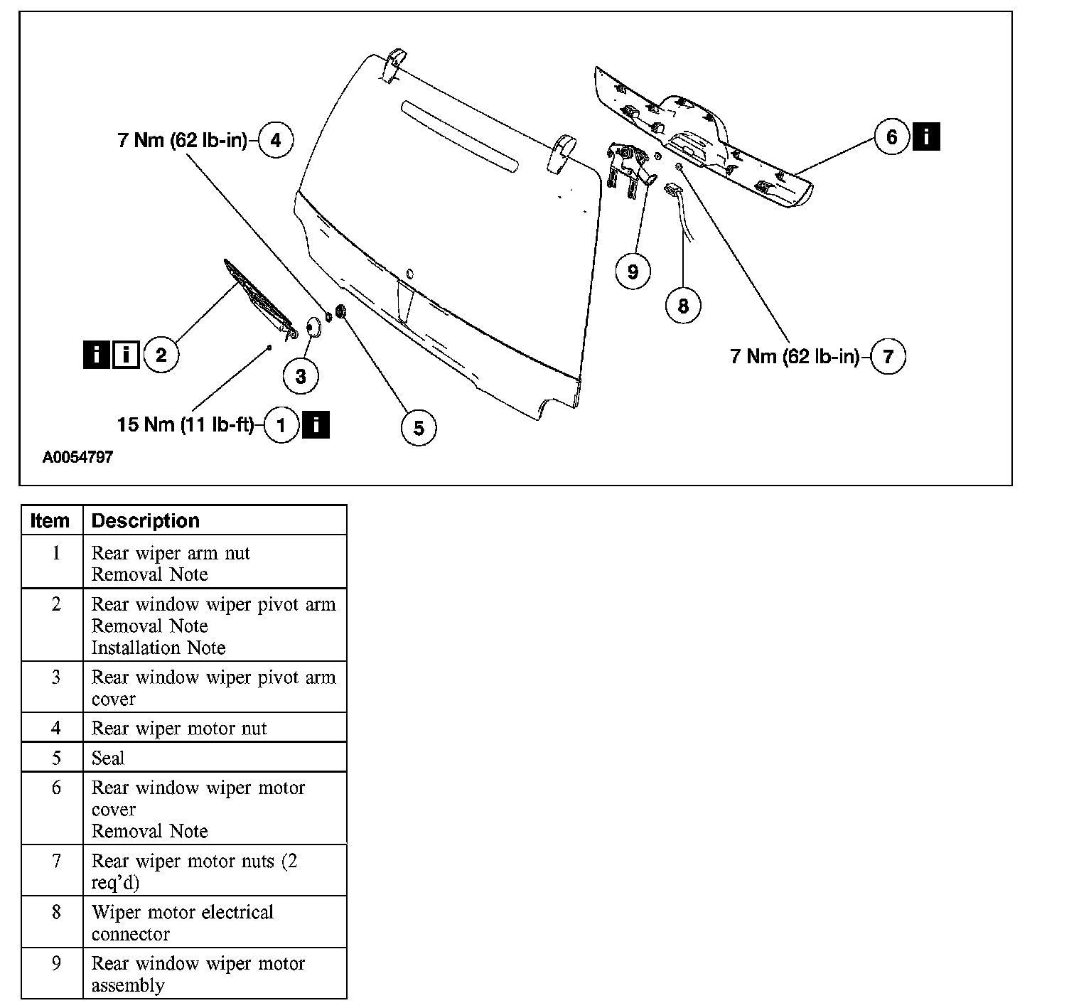 Item 6: Rear Window Wiper Motor Cover Removal Note