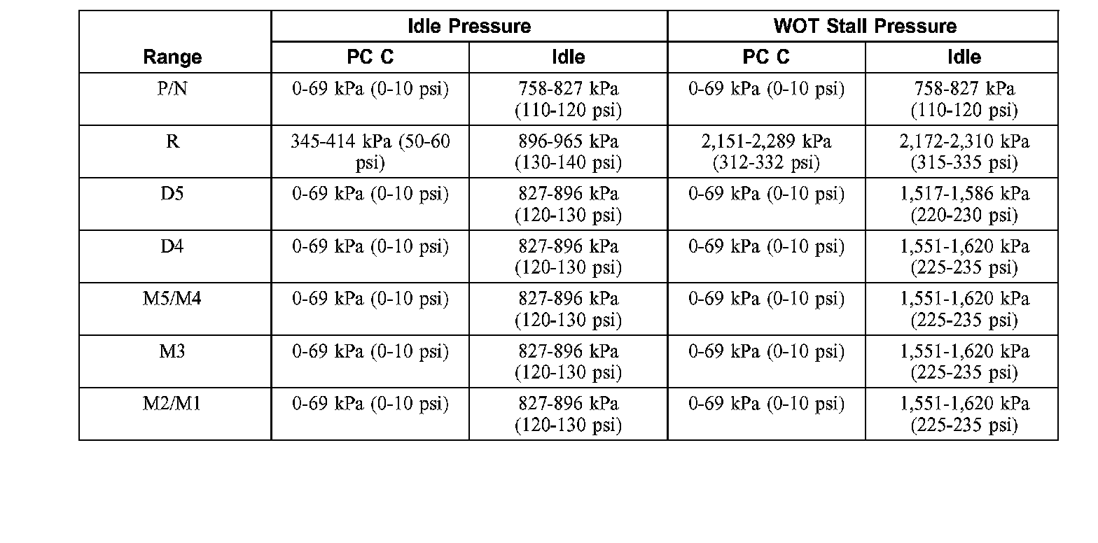 Line Pressure Chart-3.0L Engine: