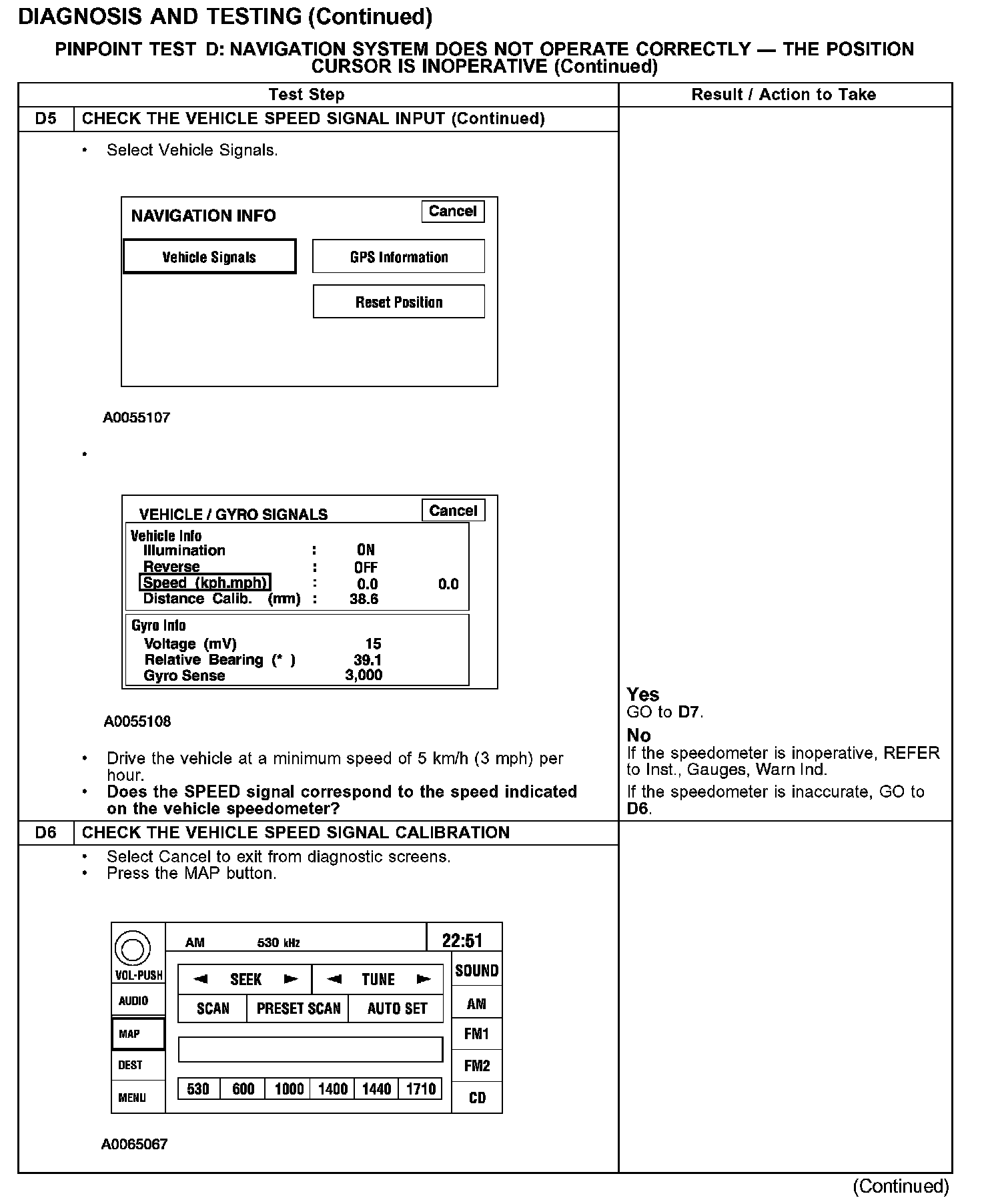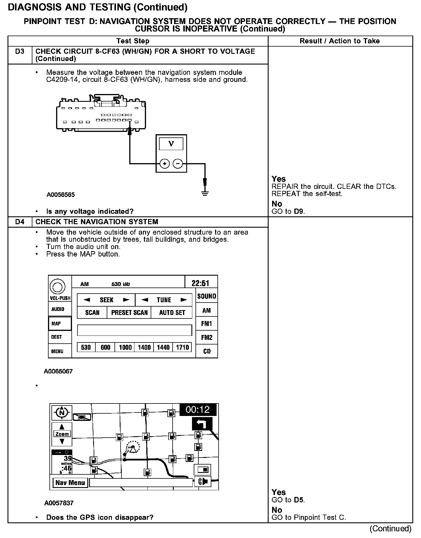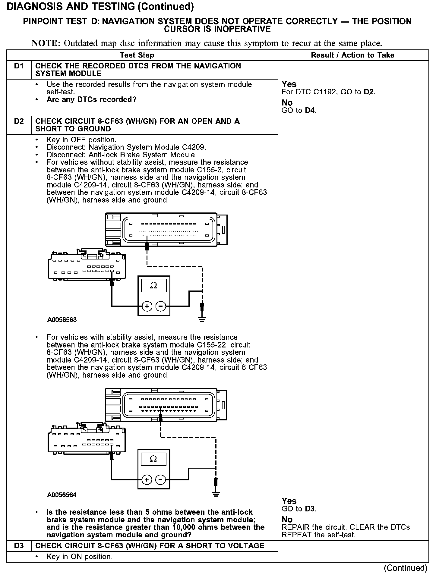 PINPOINT TEST D: NAVIGATION SYSTEM DOES NOT OPERATE CORRECTLY - THE POSITION CURSOR IS INOPERATIVETest D1-D3: