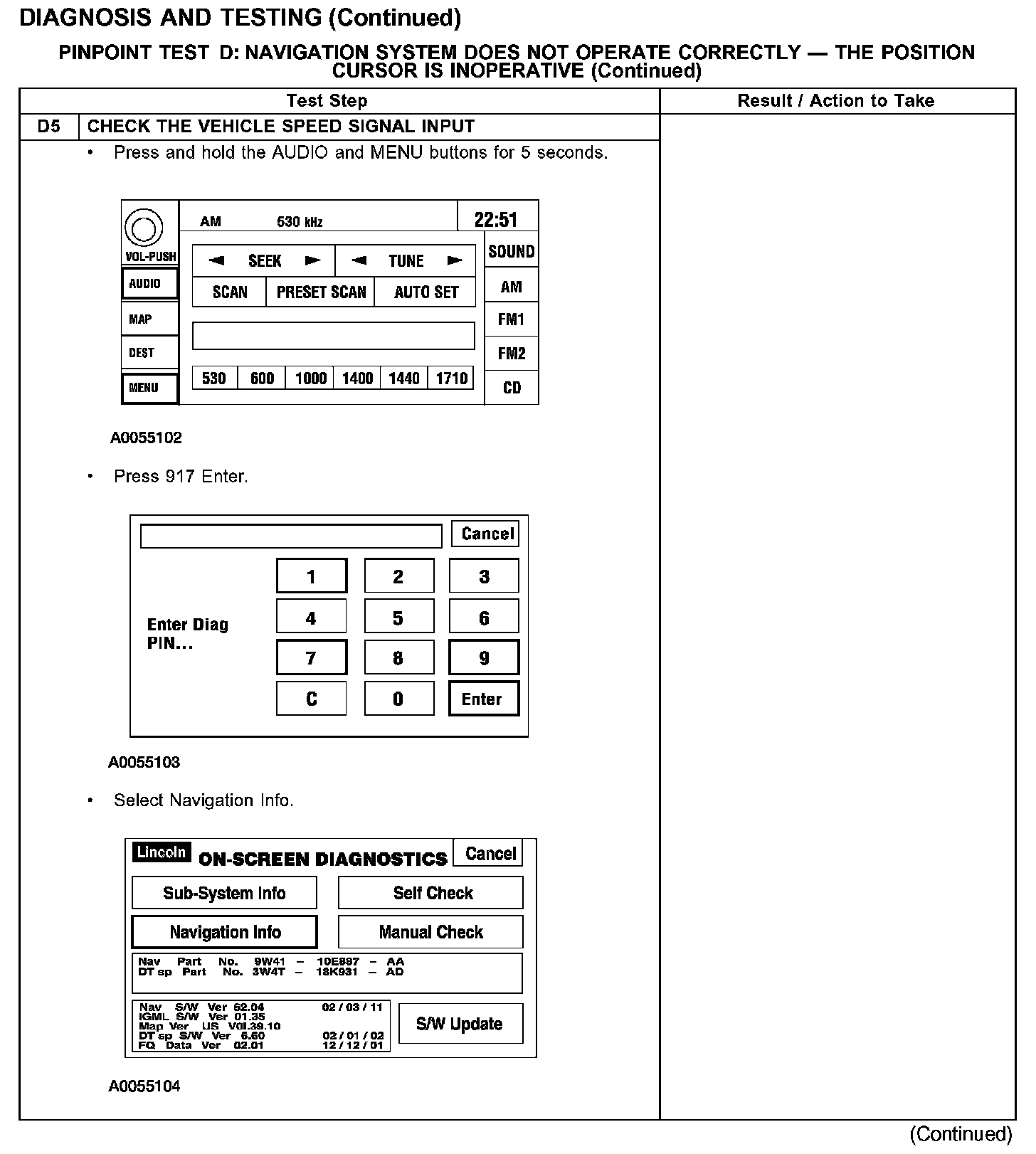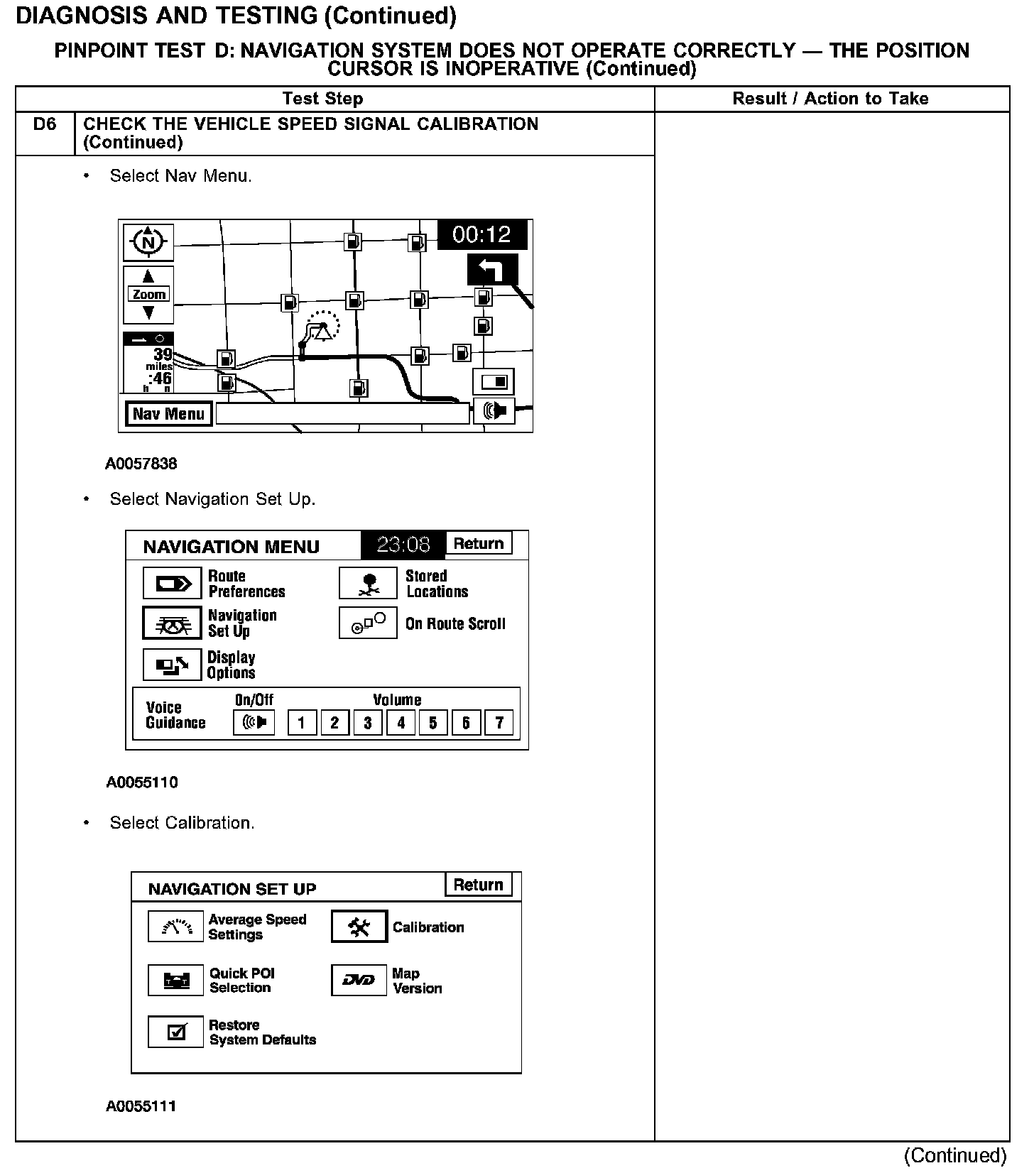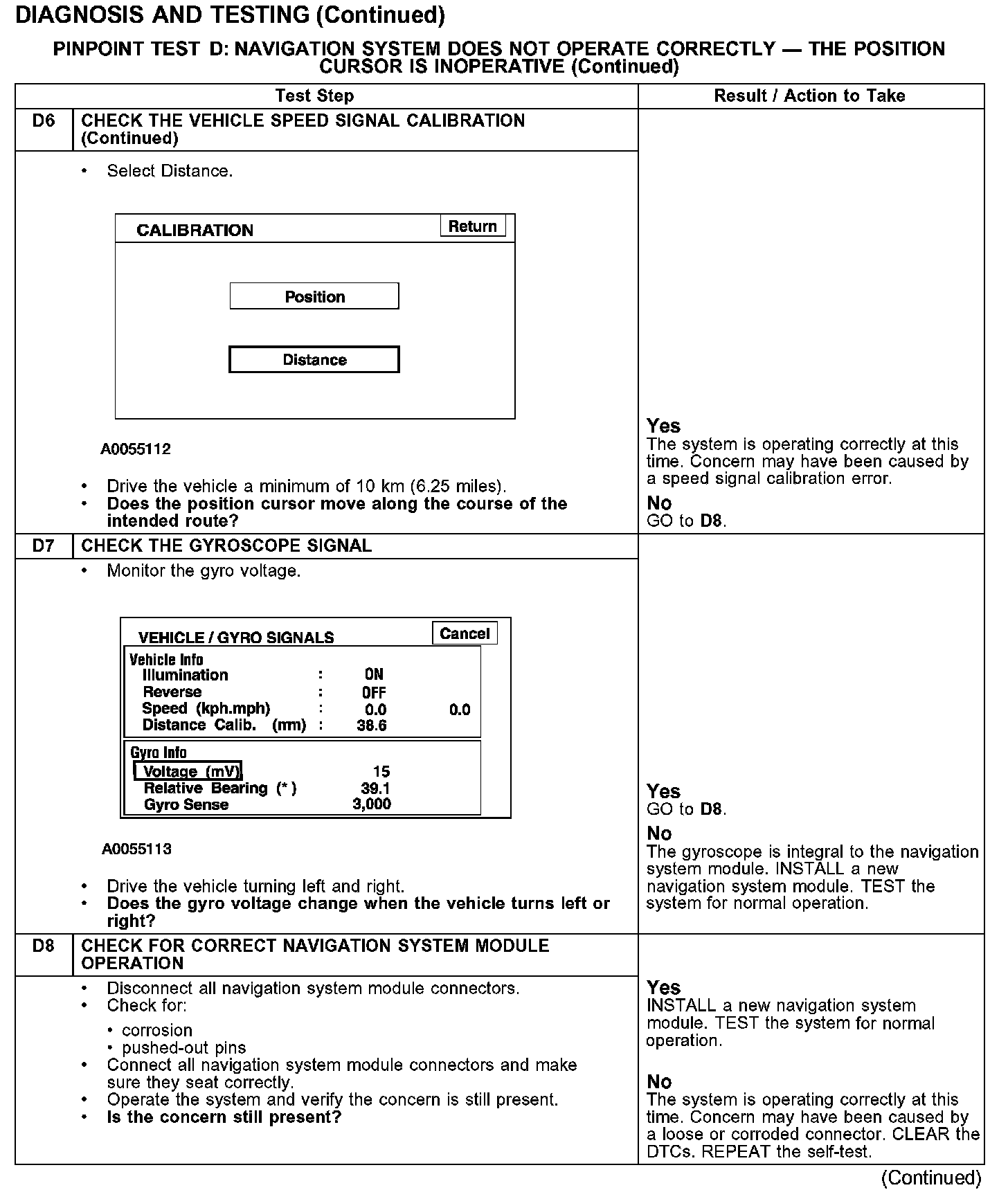 PINPOINT TEST D: NAVIGATION SYSTEM DOES NOT OPERATE CORRECTLY - THE POSITION CURSOR IS INOPERATIVETest D1-D3: