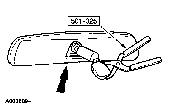 1. Place the interior mirror on the windshield bracket. Using the special tool, press the mirror in place until fully seated.