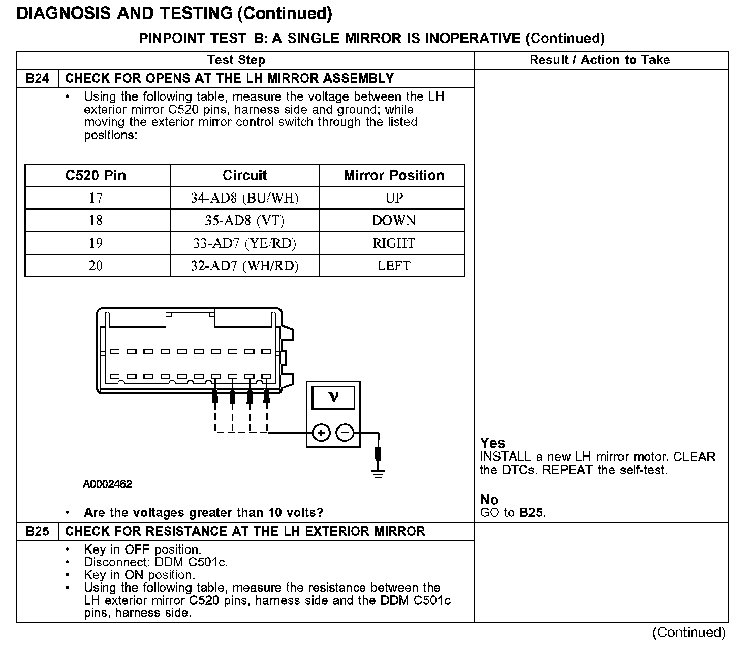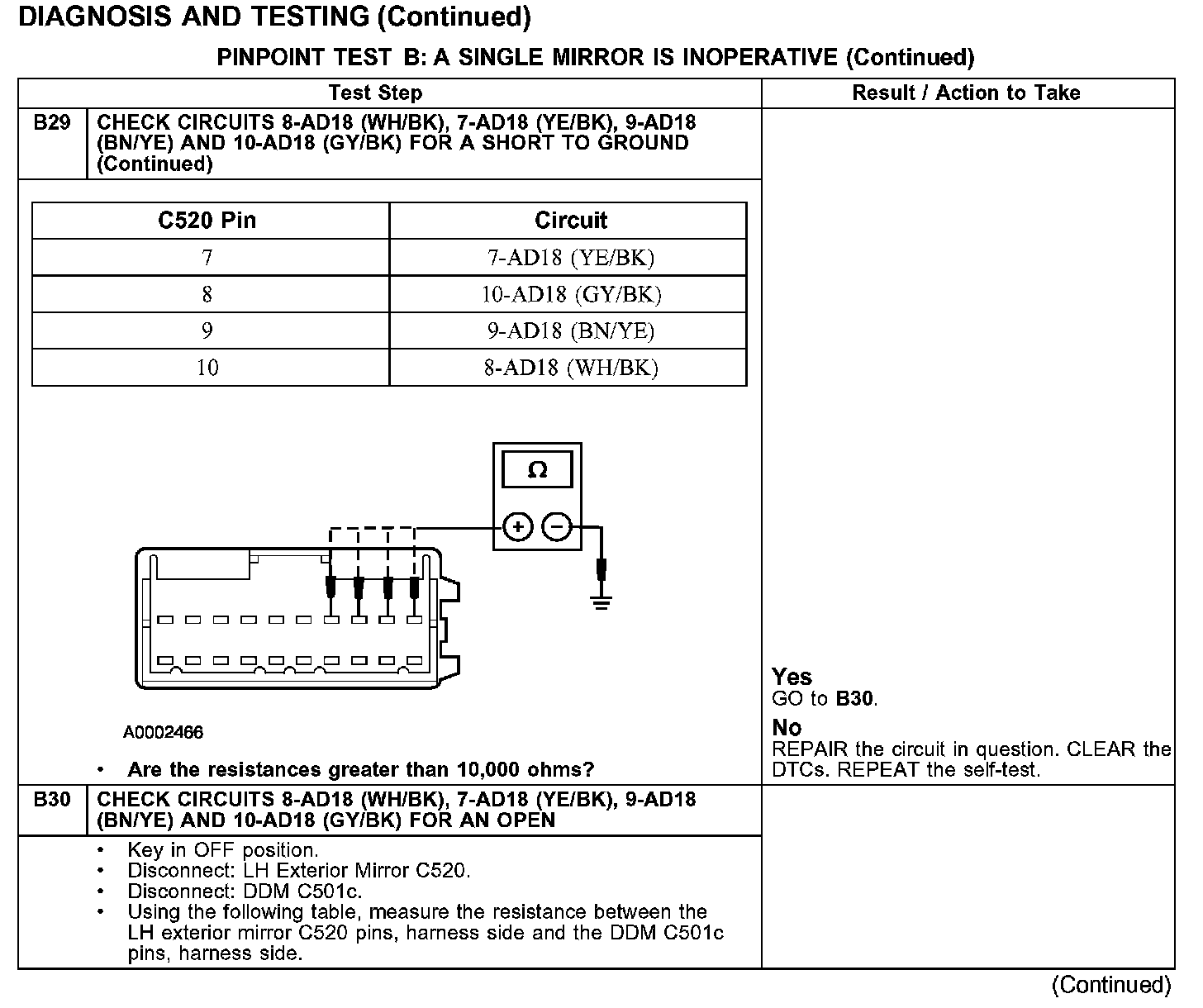 PINPOINT TEST B: A SINGLE MIRROR IS INOPERATIVETest B1-B4: