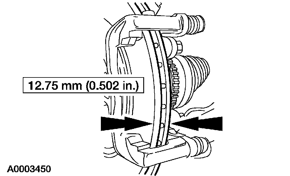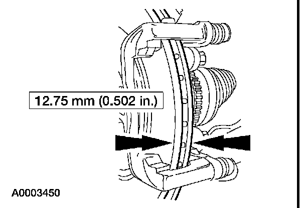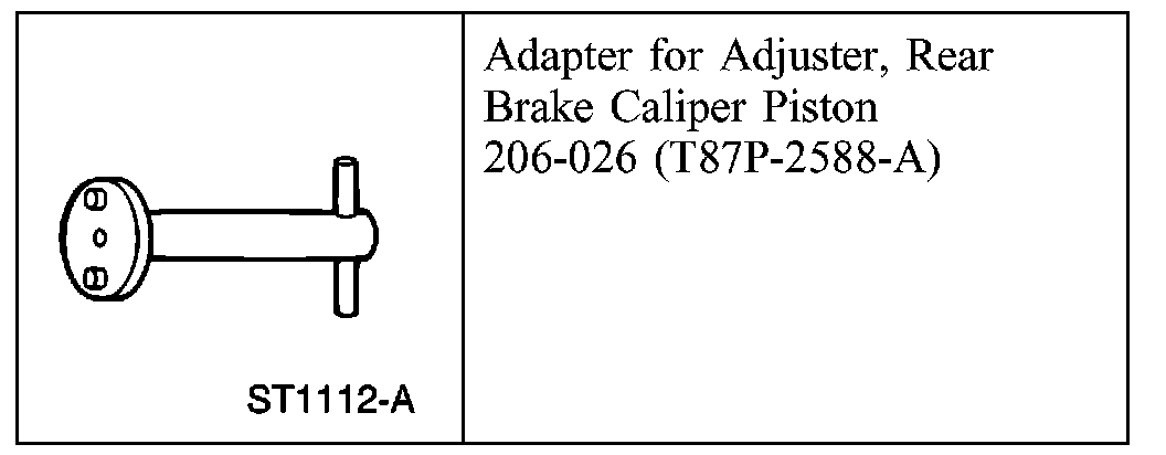 1. Using the special tool, compress the brake caliper piston and adjuster into the disc brake caliper. Align the piston notch in the up and down position.