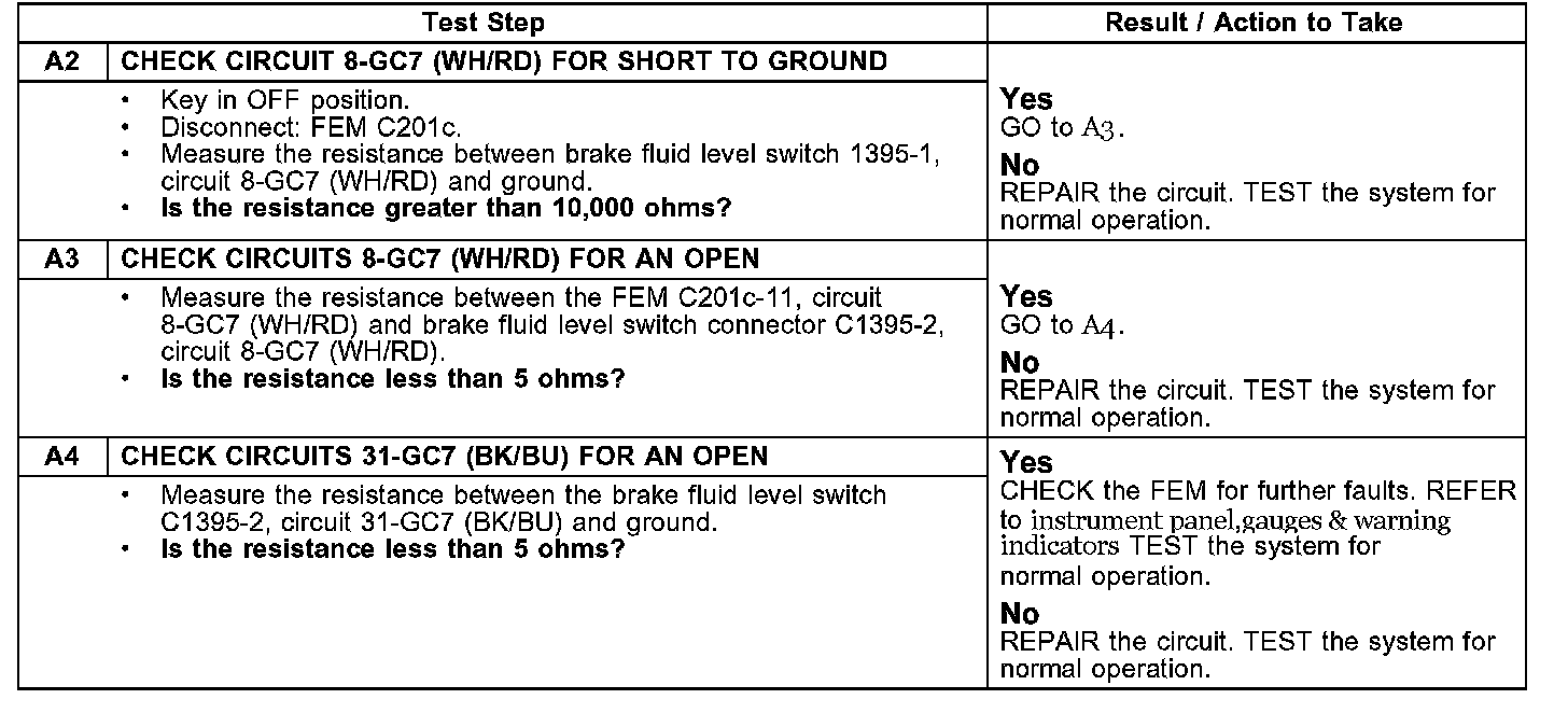 ^ open circuit in the brake fluid level switch input signal circuit 8-GC7 (WH/RD)