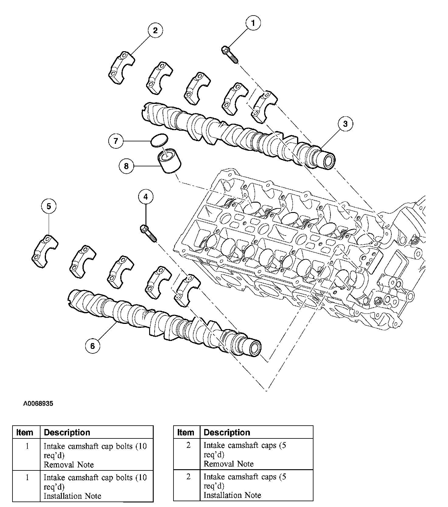 Items 1-6: Camshaft Removal Note