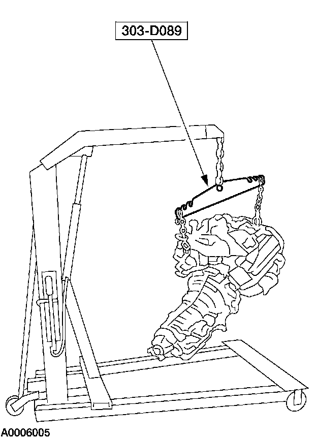 1. Using a floor crane and the special tool, install the engine onto the subframe.