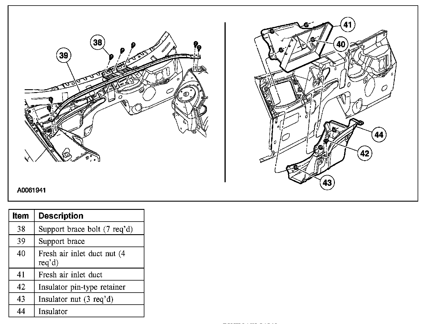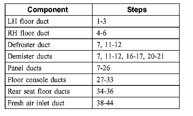 3. If removing the rear seat floor ducts, remove the lower cowl trim panels and front door sill plates to position the carpet away from the ducts.