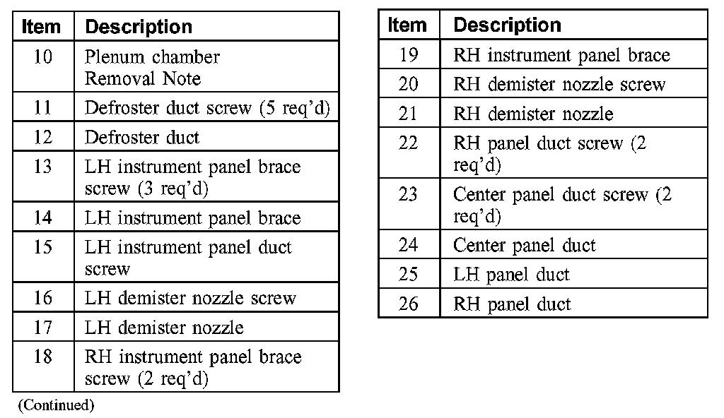 Item 8-9: LH and RH Instrument Panel Register Removal Note