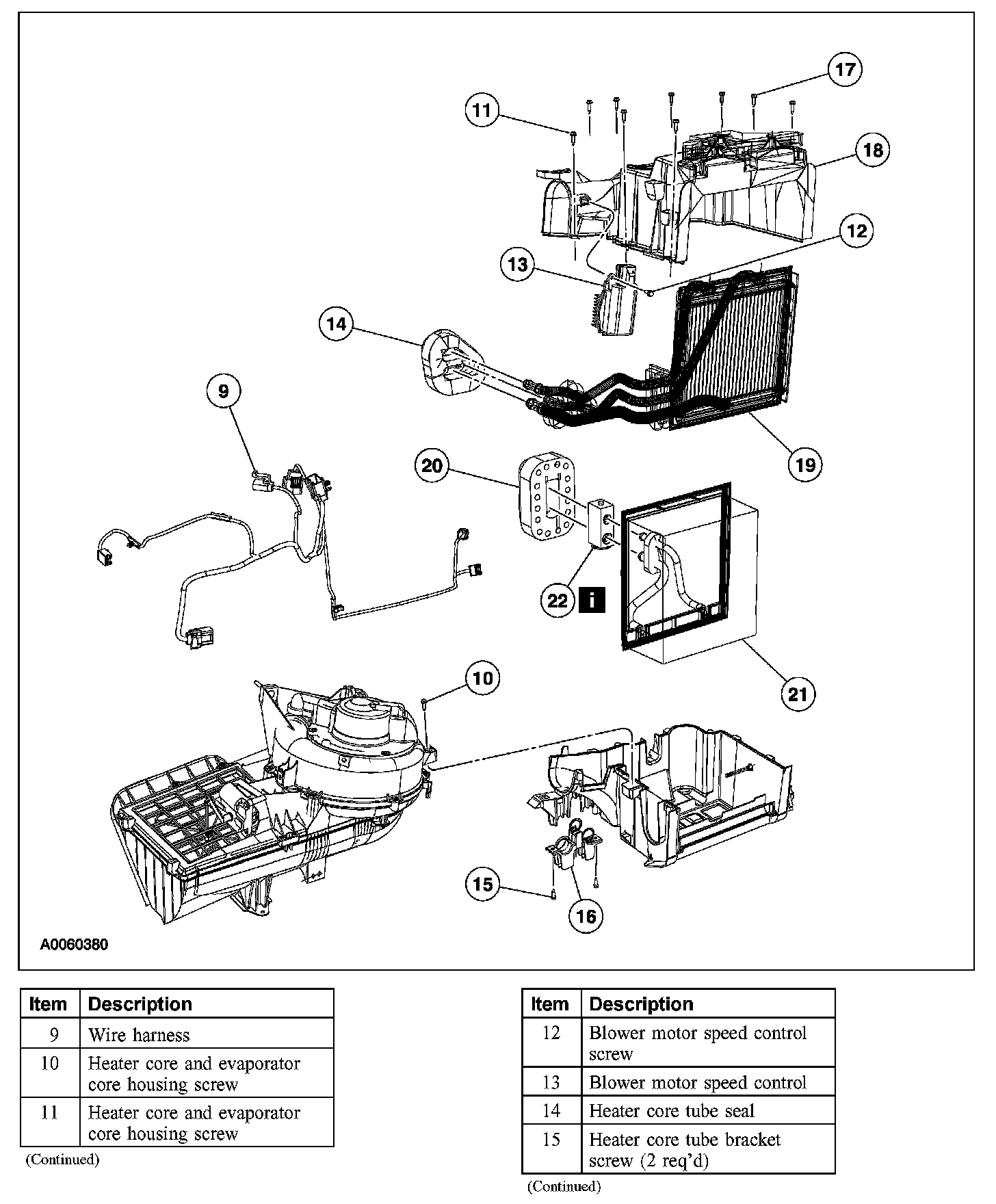 HEATER CORE AND EVAPORATOR CORE HOUSING, ASSEMBLY AND COMPONENTS