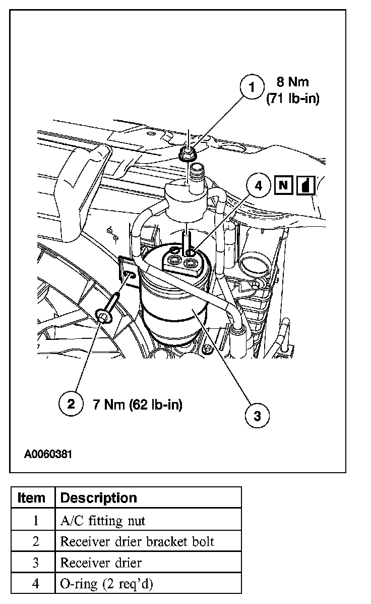 - Installation of a new receiver drier is not required when repairing the air conditioning system except when there is physical evidence of contamination from a failed A/C compressor or damage to the receiver drier.